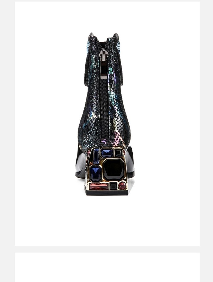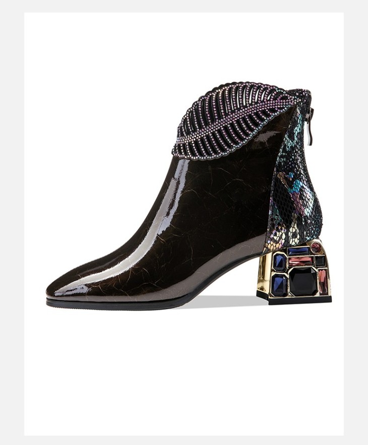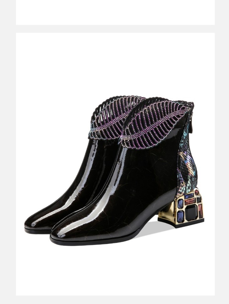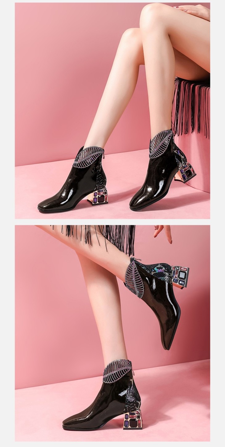 短靴女新款单靴百搭中跟粗跟水钻金色女士皮鞋女裸靴 JZX101-162