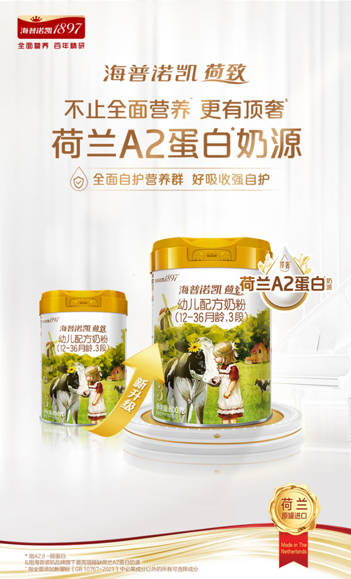 海普诺凯1897荷致A2蛋白奶源版婴儿配方奶粉3段800g