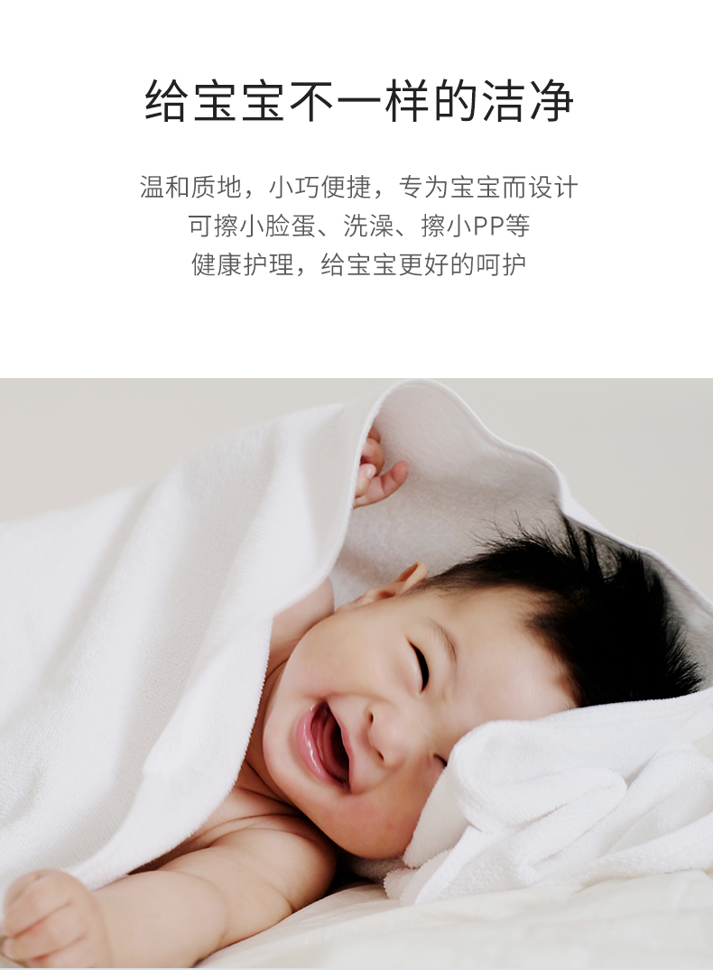 适用宝宝多种护理环境,独立包装,EO消毒,安全卫生。加大尺寸设计,吸水性更强,洁面更广;甄选优质无纺布,厚实亲肤,柔韧舒适