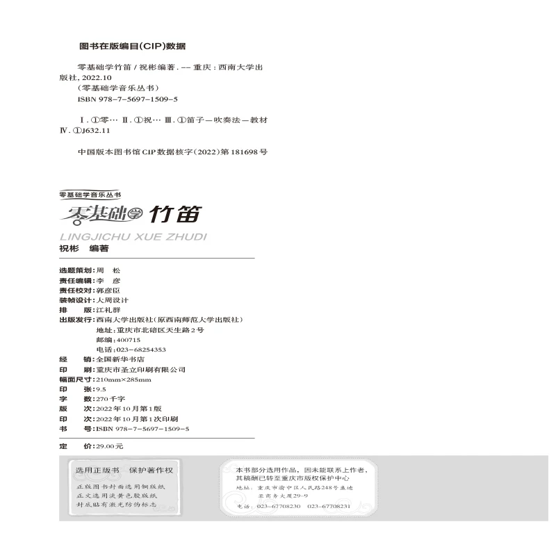 *书名:零基础学竹笛 | *ISBN:978-7-5697-1509-5 |