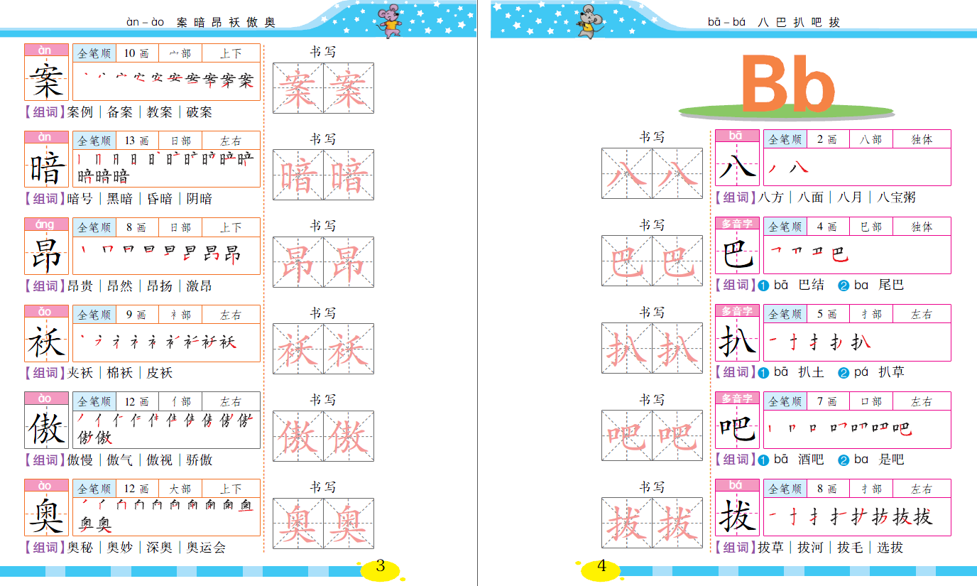 识字、写字永远是小学生进行汉语言学习的**步。本手册结合新课标要求,以及国家《现代汉语通用字笔顺规范》为依据,结合各版小学语文教材中所涉及的汉字,对每个字进行逐笔拆解,并配以描红助写的形式,帮助小学生掌握正确书写汉字的方法。手册还设置了拼音、结构、部首、笔画,以及重要组词、汉字来源等内容,一书多用,是小学生识字写字的好帮手。