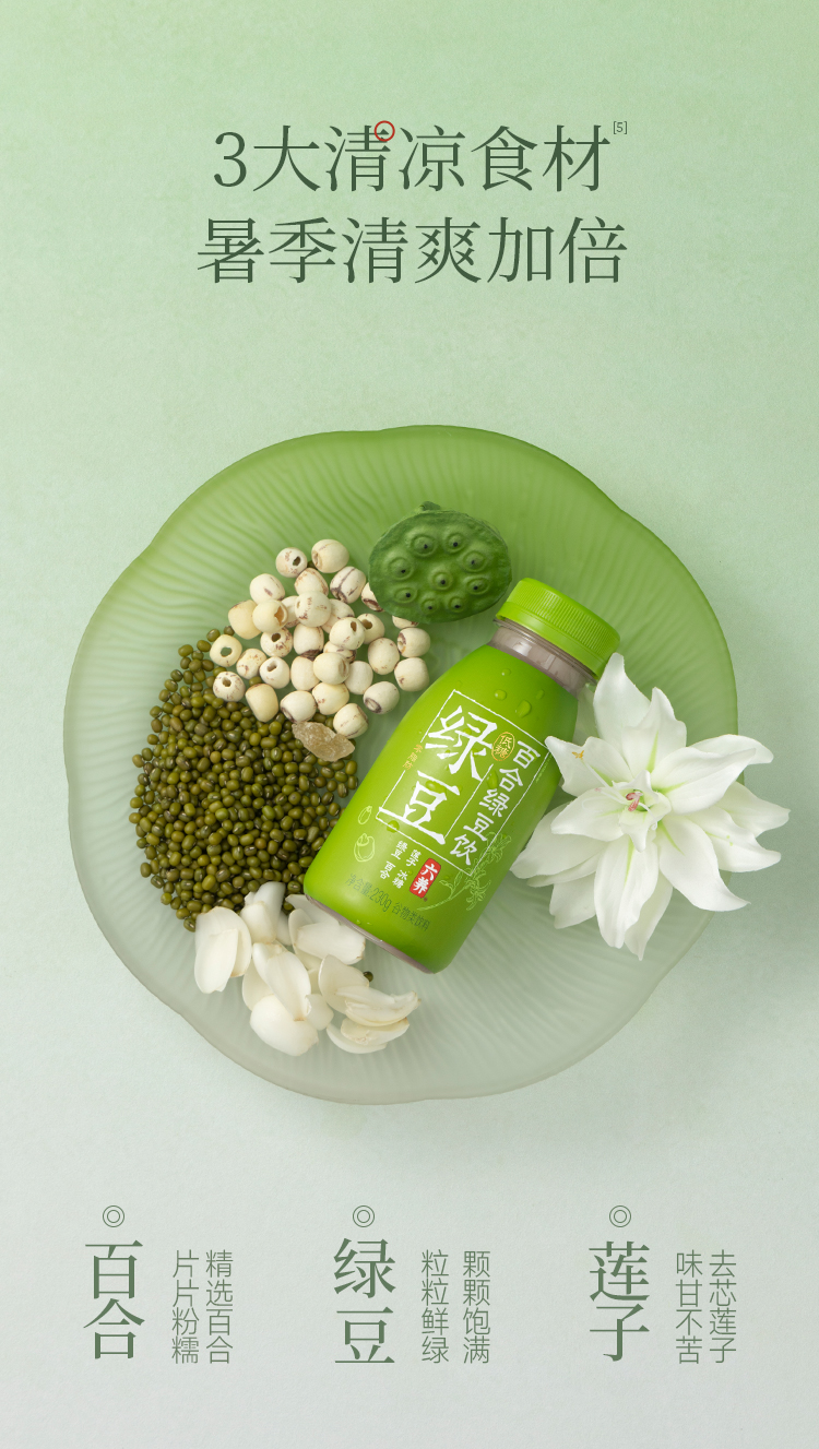 清爽植物饮品 | 六养百合绿豆饮 夏天diy绿豆沙谷物类饮料 230g*8瓶装