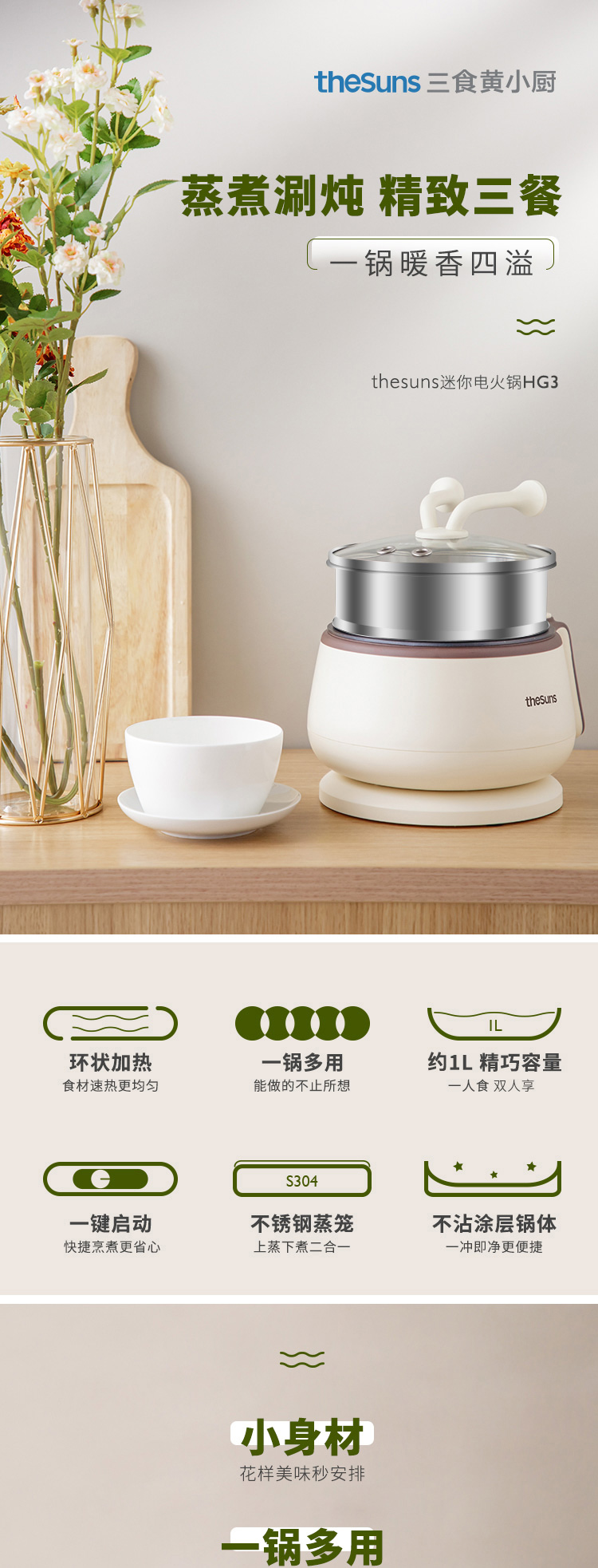 黄小厨 三食Thesuns 多功能锅 MP601 升级款(平煎盘+深锅+蒸架)两色可选