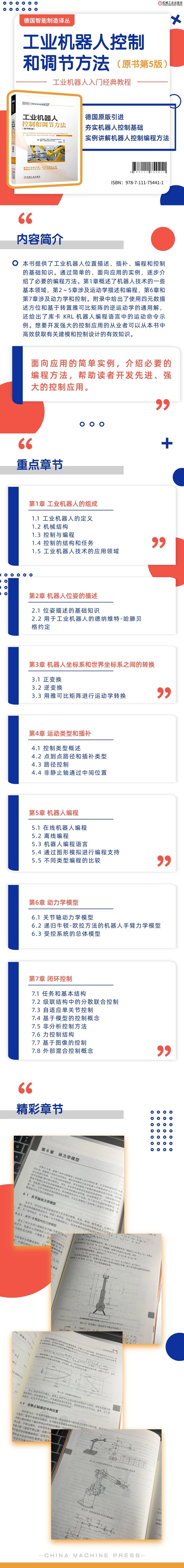 本书面向广泛的读者群,对于将机器人技术作为其主要研究的一部分大学和技术学院的学生,本书提供了工业机器人运动描述、编程和控制方面的基础内容。