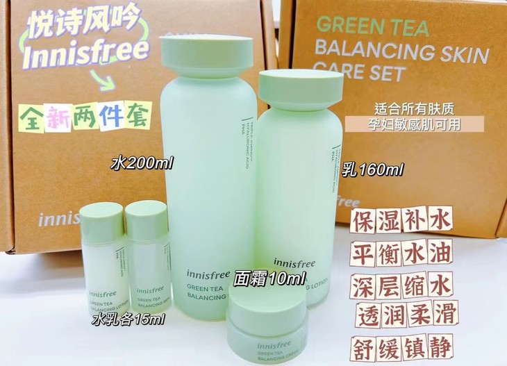 悦诗风吟绿茶两件套 | 👍 平价中的战斗机✈️。主打✨:帮助肌肤补充水分、平衡水油、长效保湿,镇静肌肤📣!上脸清爽不刺激🌈,油性肌肤使用也毫无负担🙌🏻!淡淡绿茶清新味道🍵,令人非常舒适💃🏻。适合学生党➕年轻肌肤需要补水保湿效果的人群使用👏🏻~