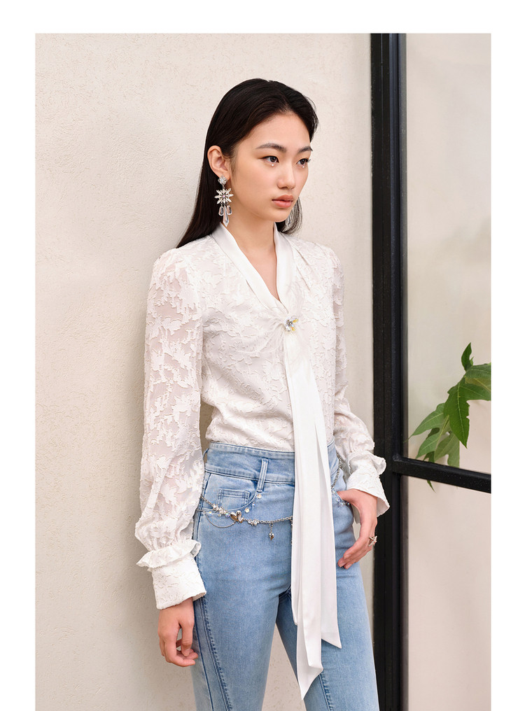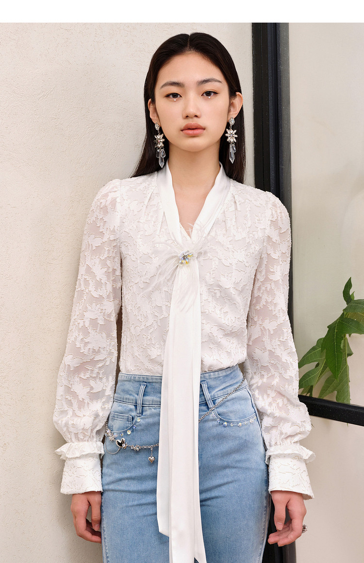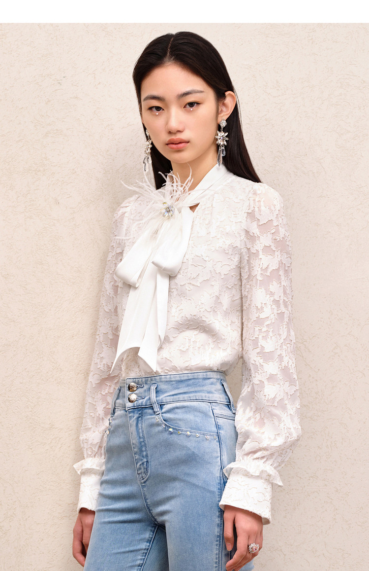 精致复古提花百搭衬衫优雅温柔风衬衣秋装上衣女MS88TP503A10