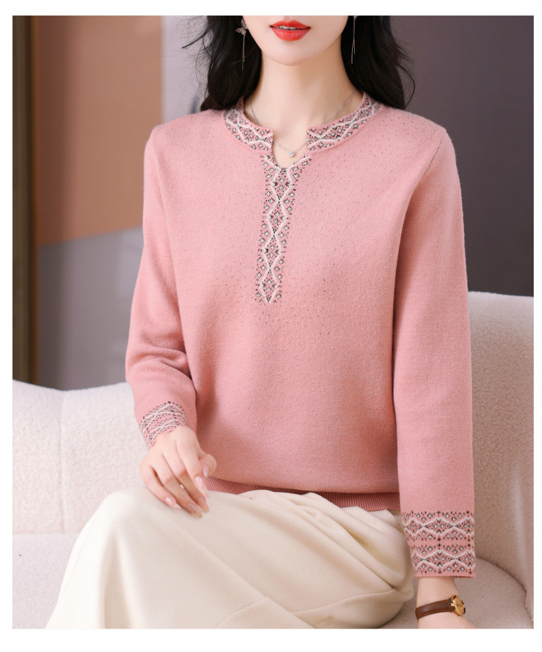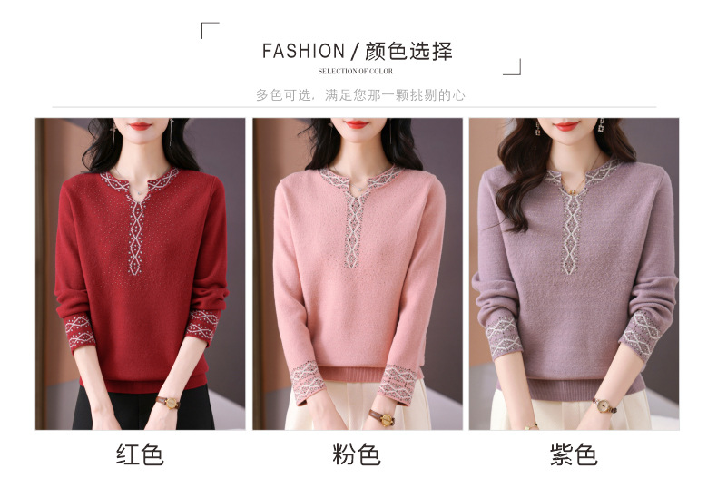 CC-MS-6918新款半开领针织衫上衣气质羊毛衣服妈妈春秋款宽松女装