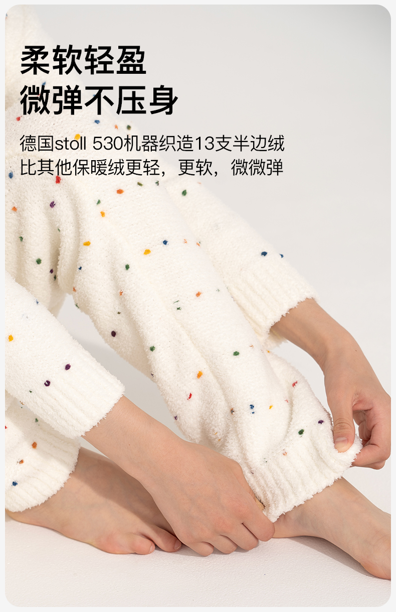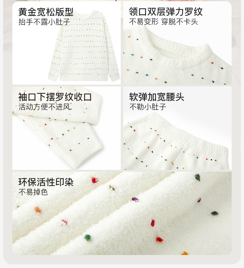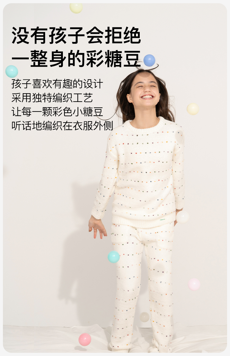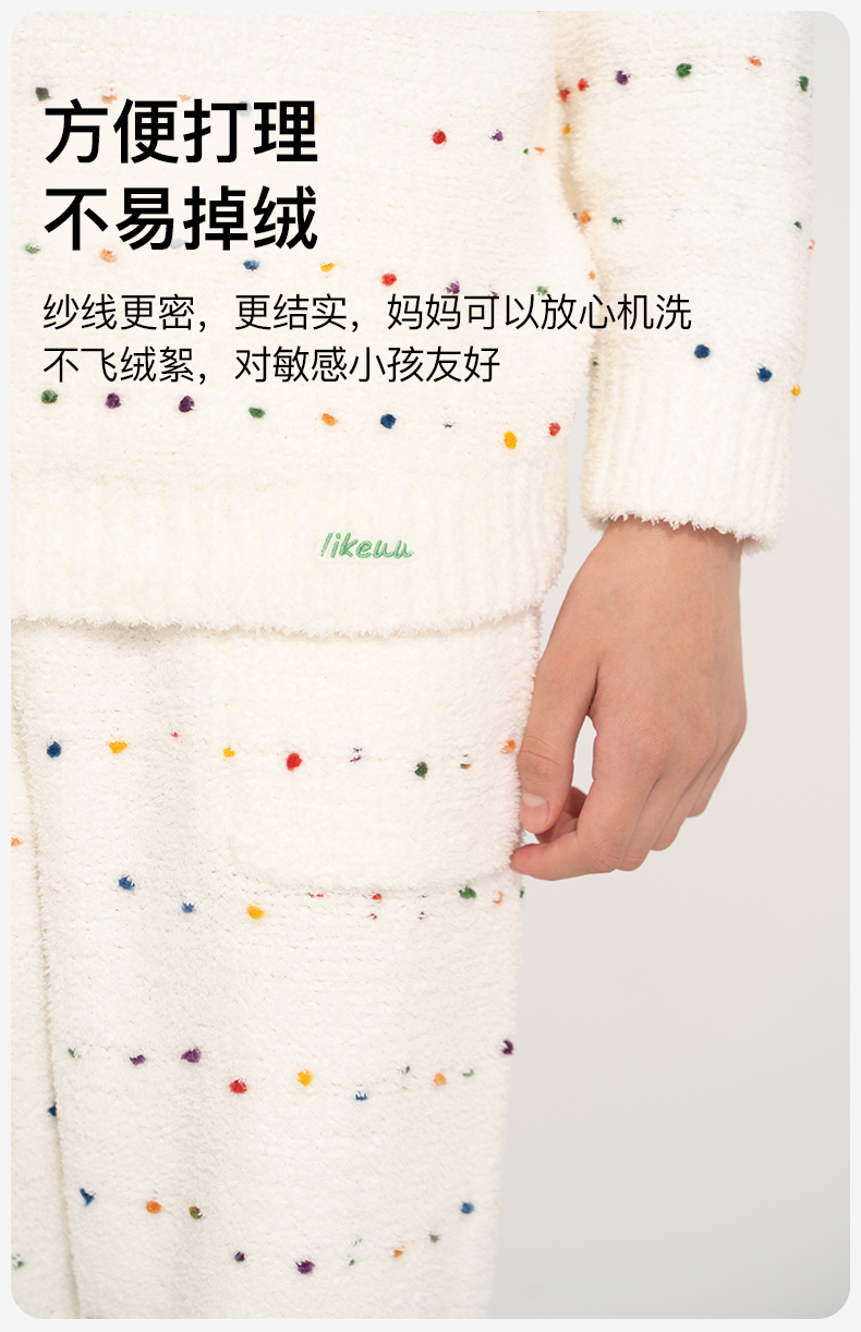 likeuu儿童家居服套装亲子款彩糖豆半边绒睡衣秋冬男女ZY