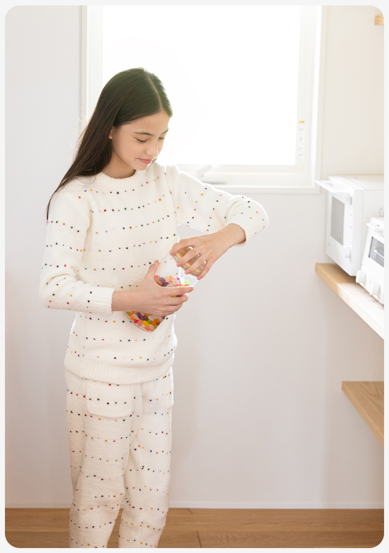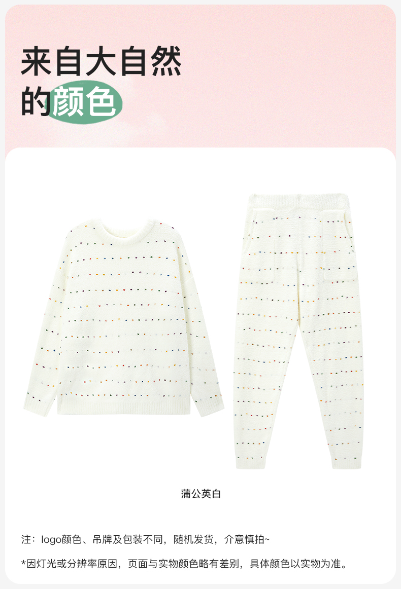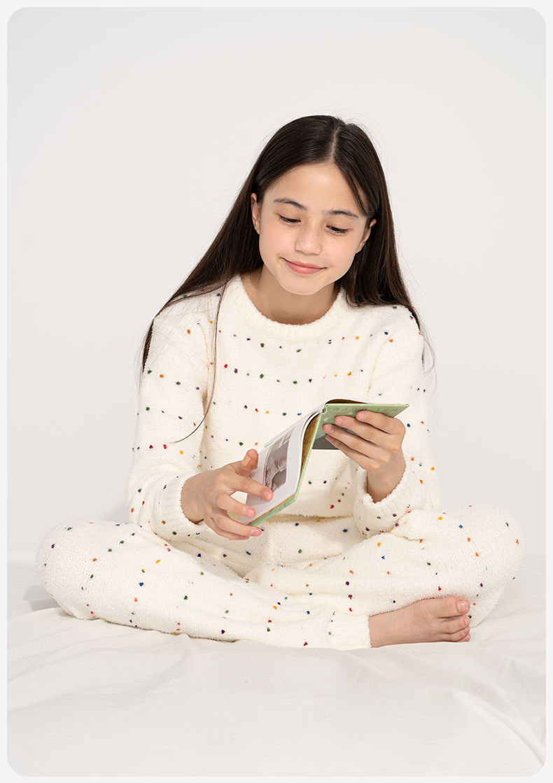 likeuu儿童家居服套装亲子款彩糖豆半边绒睡衣秋冬男女ZY