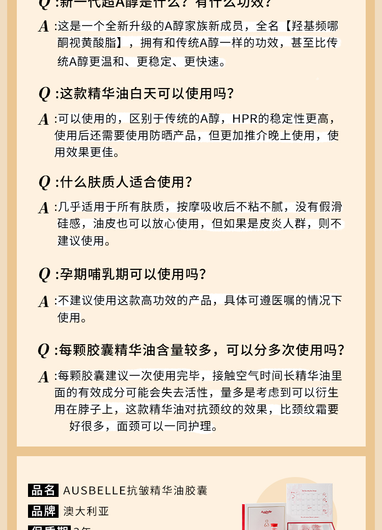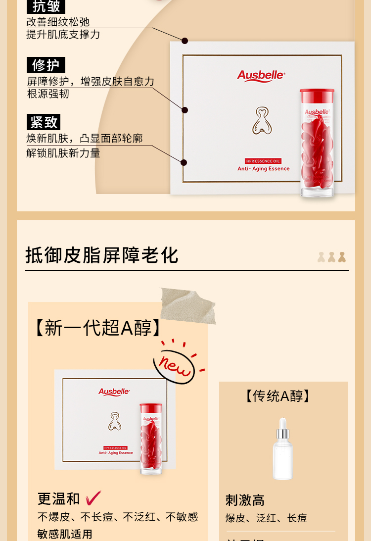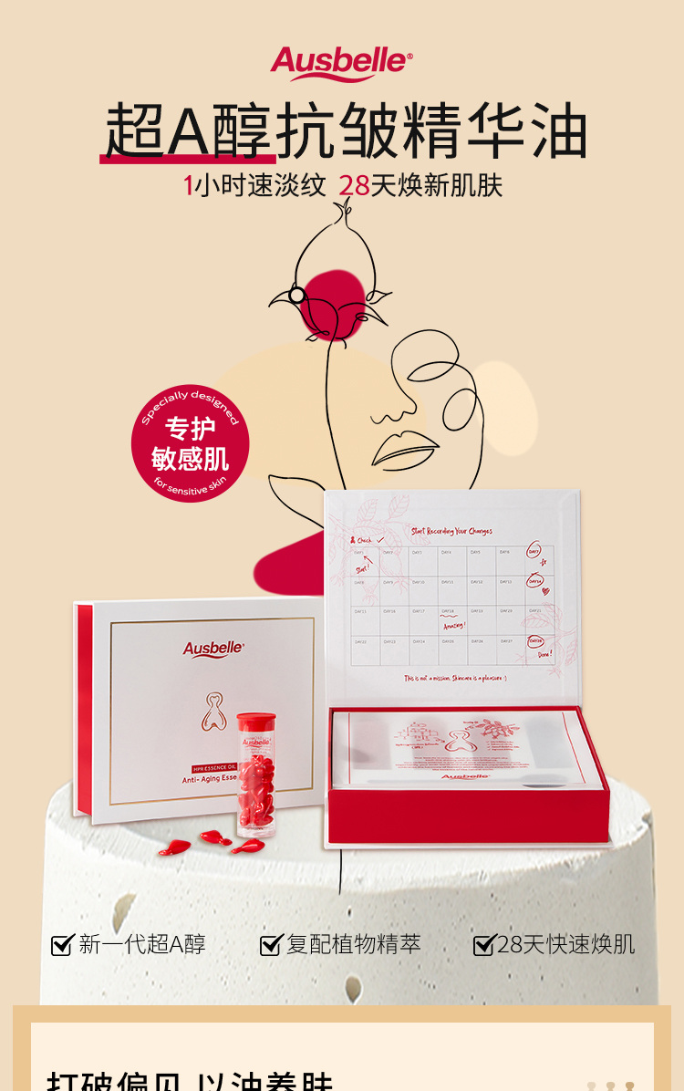 【跨境】Ausbelle澳思蓓 抗皱精华油胶囊【超A精华油(HPR)】礼盒56粒/盒 (赠小样7粒/管*2管)多规格任选(效期:2027-03)