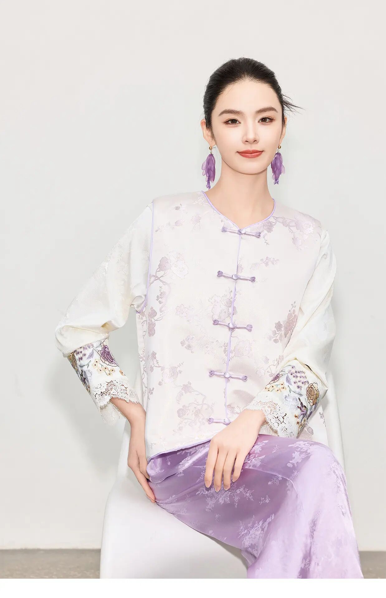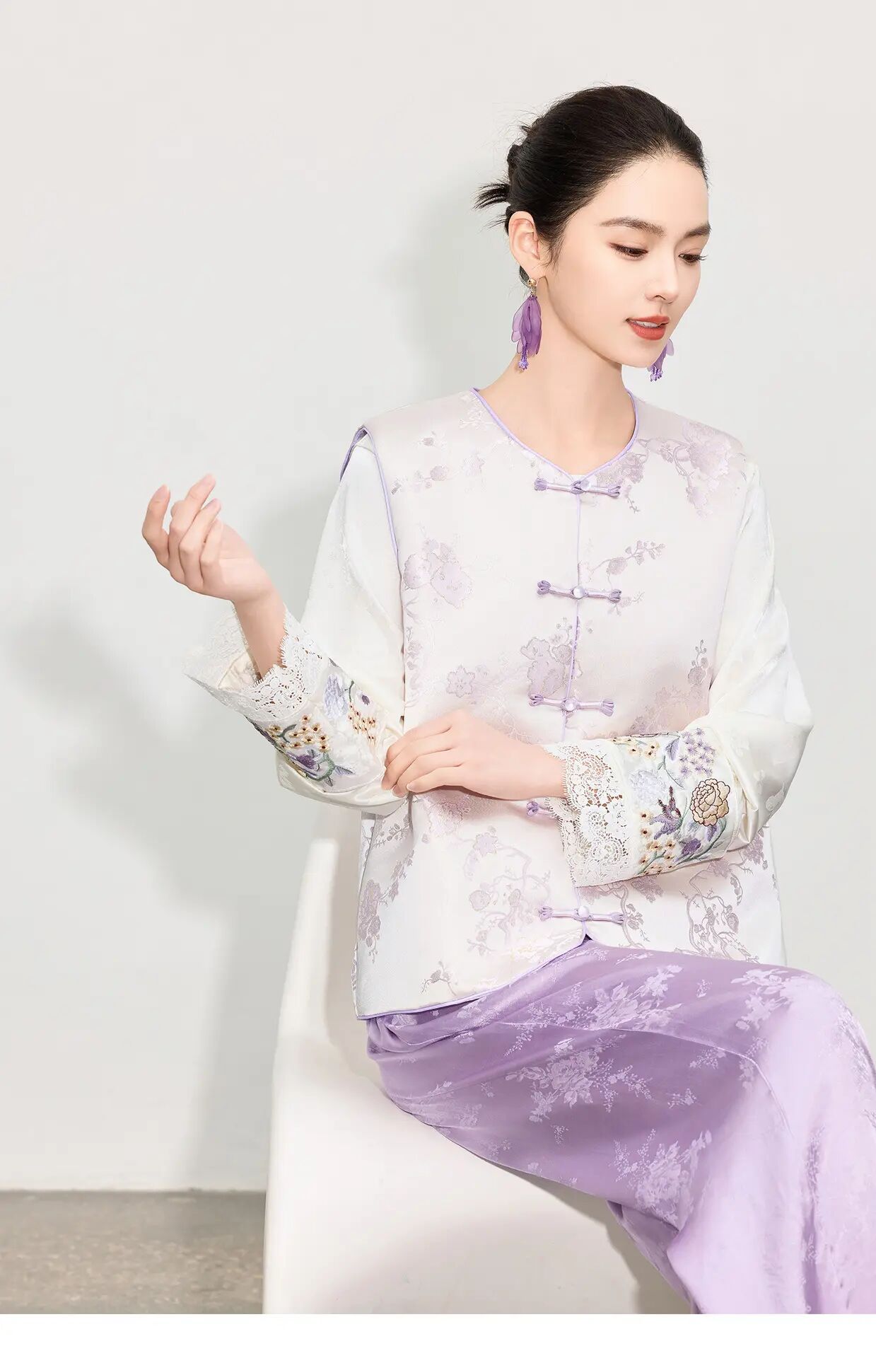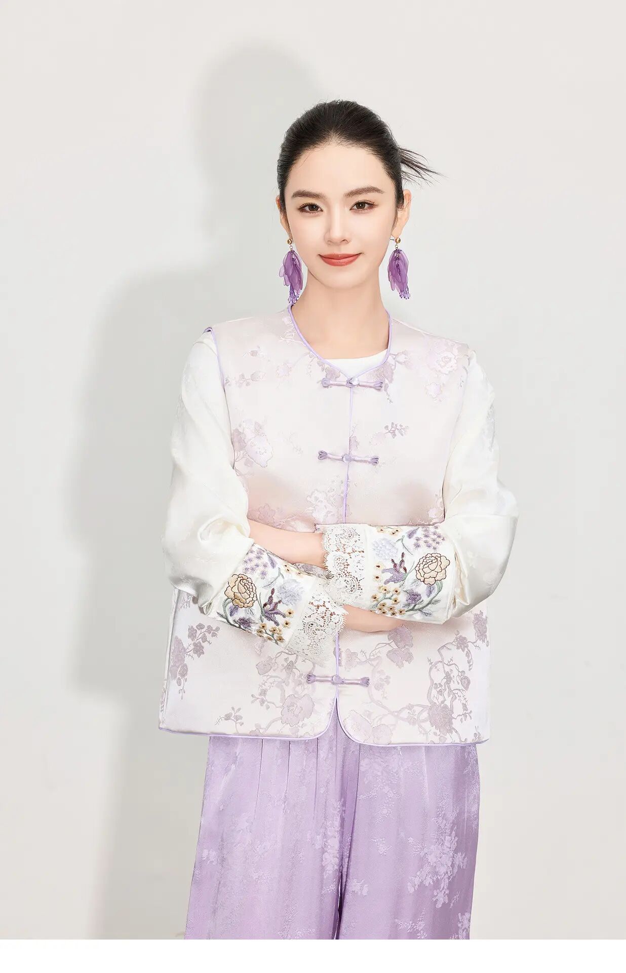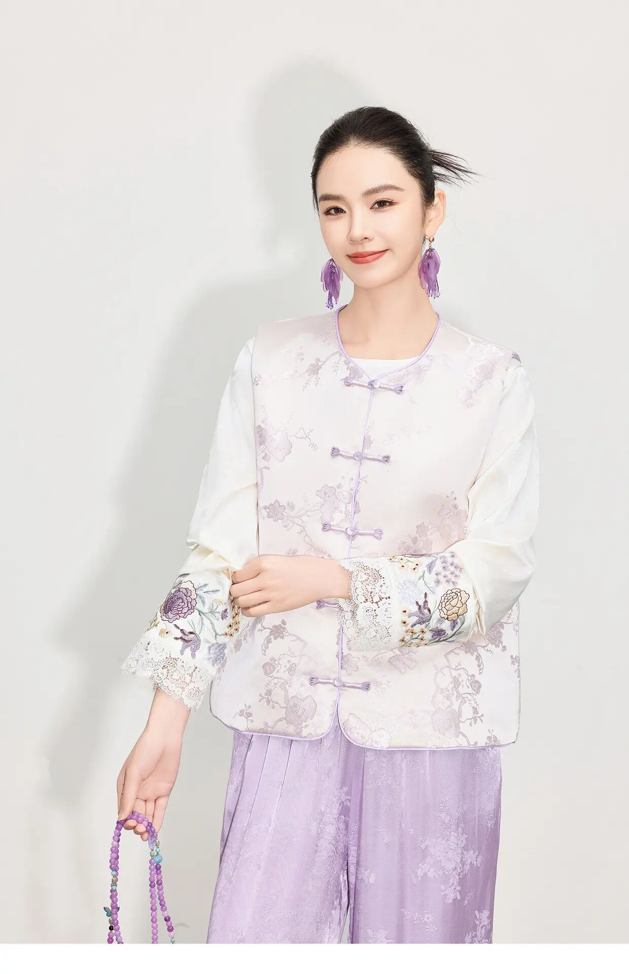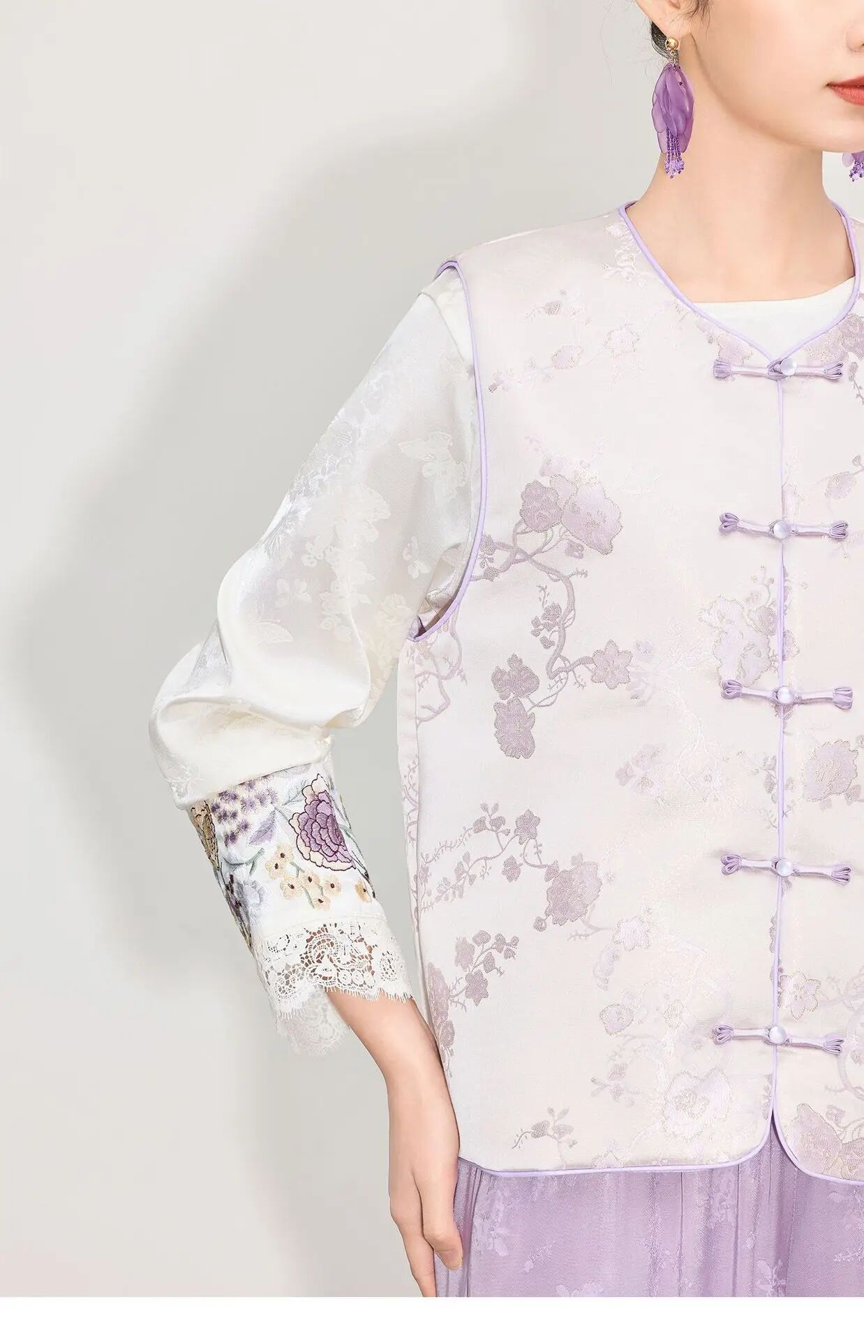 【自】全新升级【铂金会员284/天猫379/差价95】(45018) 洛诗琳新中式温柔国风马甲女25春季新款盘扣提花设计感上衣