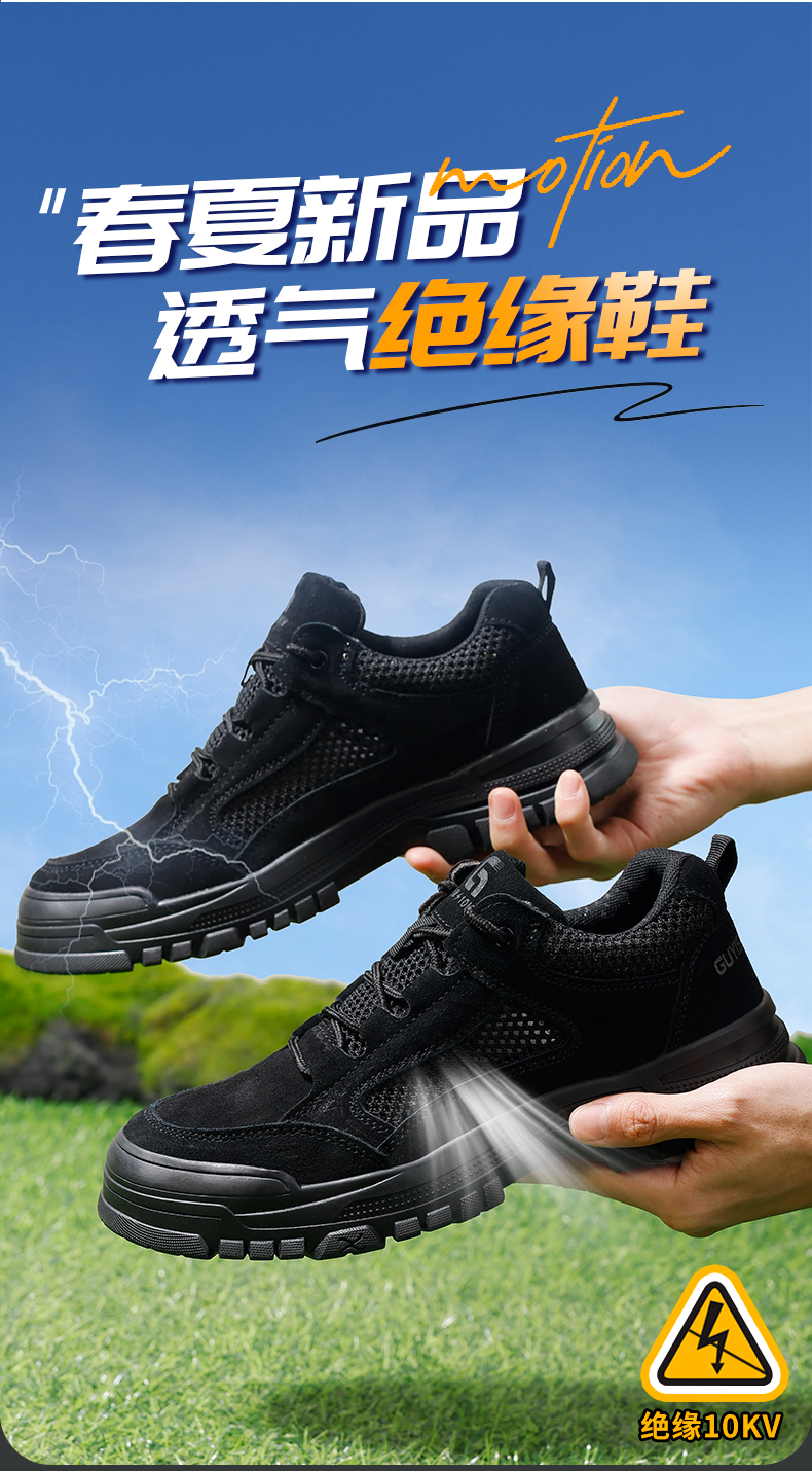 新款夏季透气电工鞋绝缘鞋防砸防刺劳保鞋达标塑包头