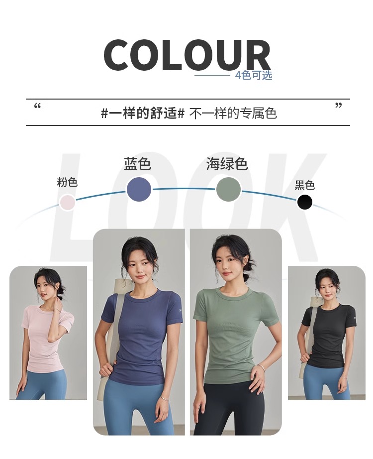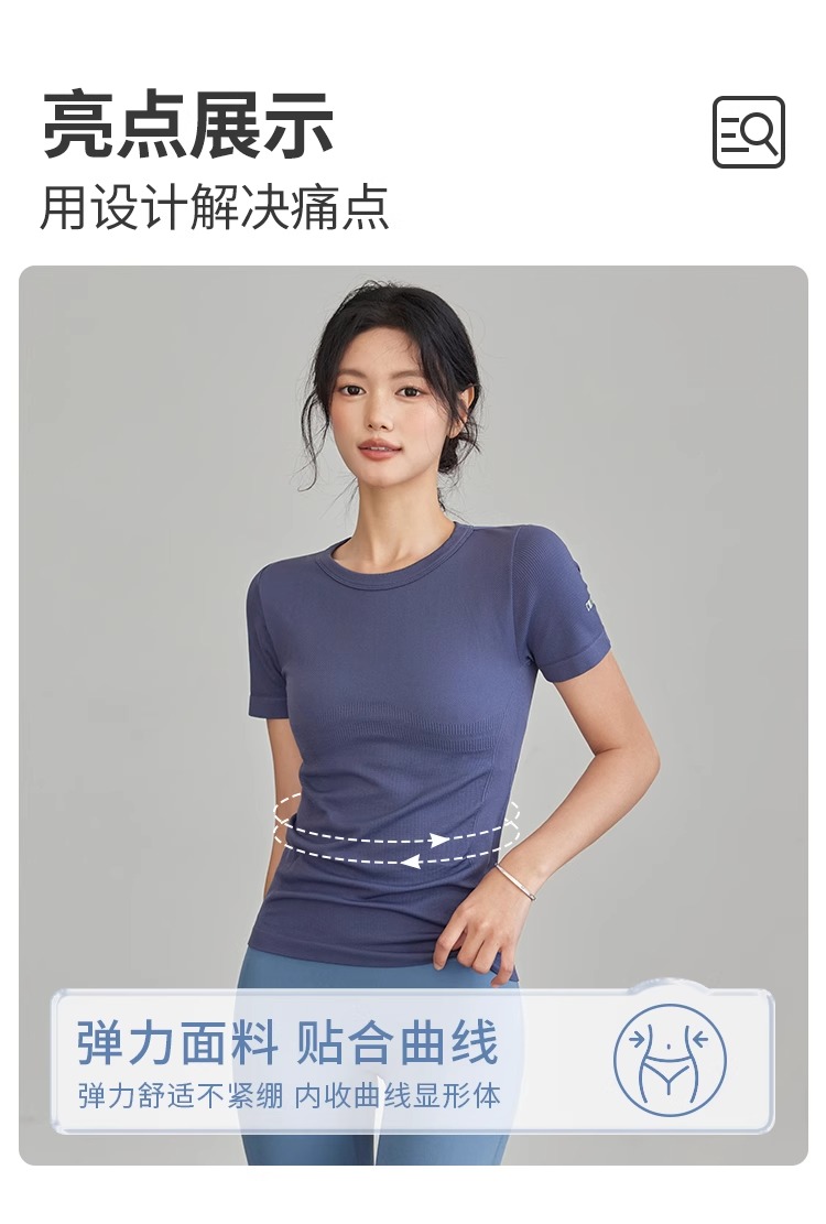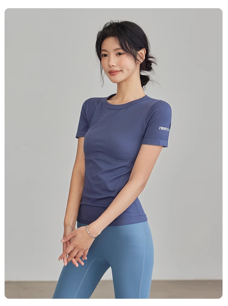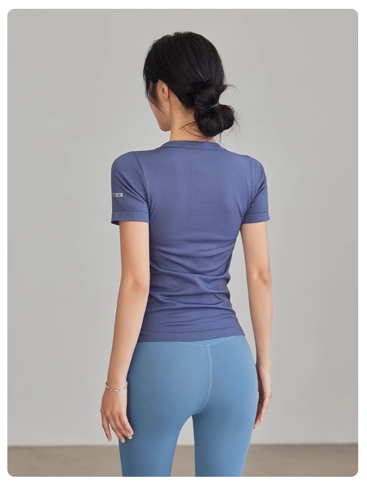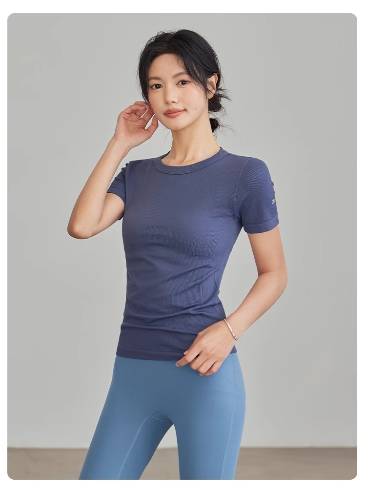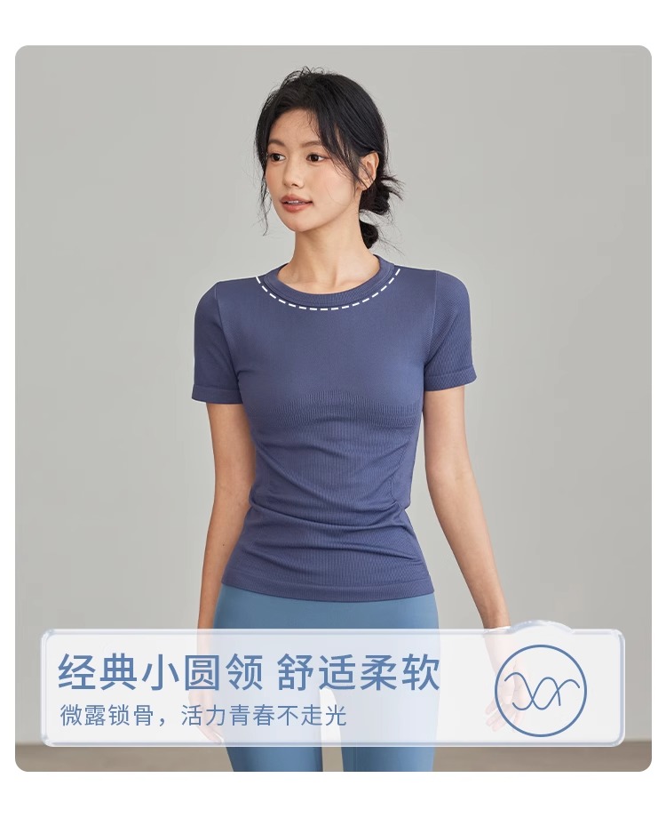 Gymicon能量符号 春夏无缝瑜伽短袖T恤女运动健身显瘦螺纹速干上衣跑步训练瑜伽YASY2503