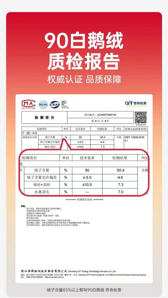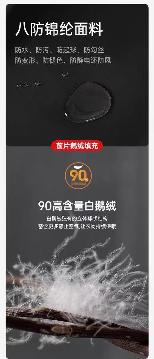 1.前片采用当下最好的新国标90白鹅绒,横岗分割式充绒,不跑绒、不钻绒、更保暖!