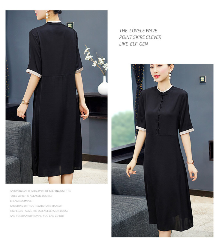 XY-MY13066新款宽松黑色百搭气质淑女纯色桑蚕丝连衣裙