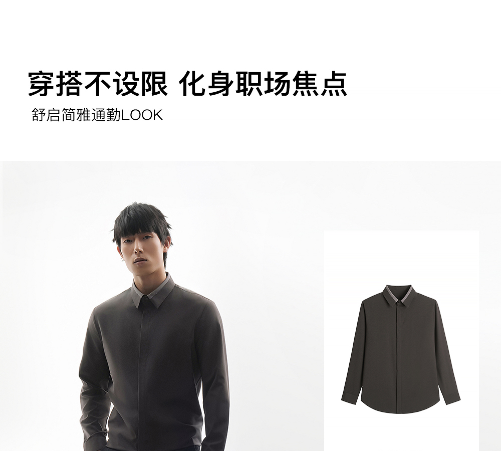 HIM漢崇 日常通勤商务正装时尚都市职业舒适长袖衬衫男 2026春季