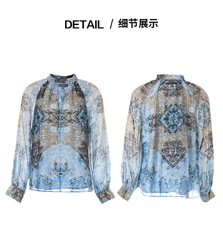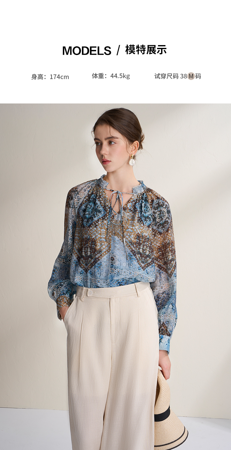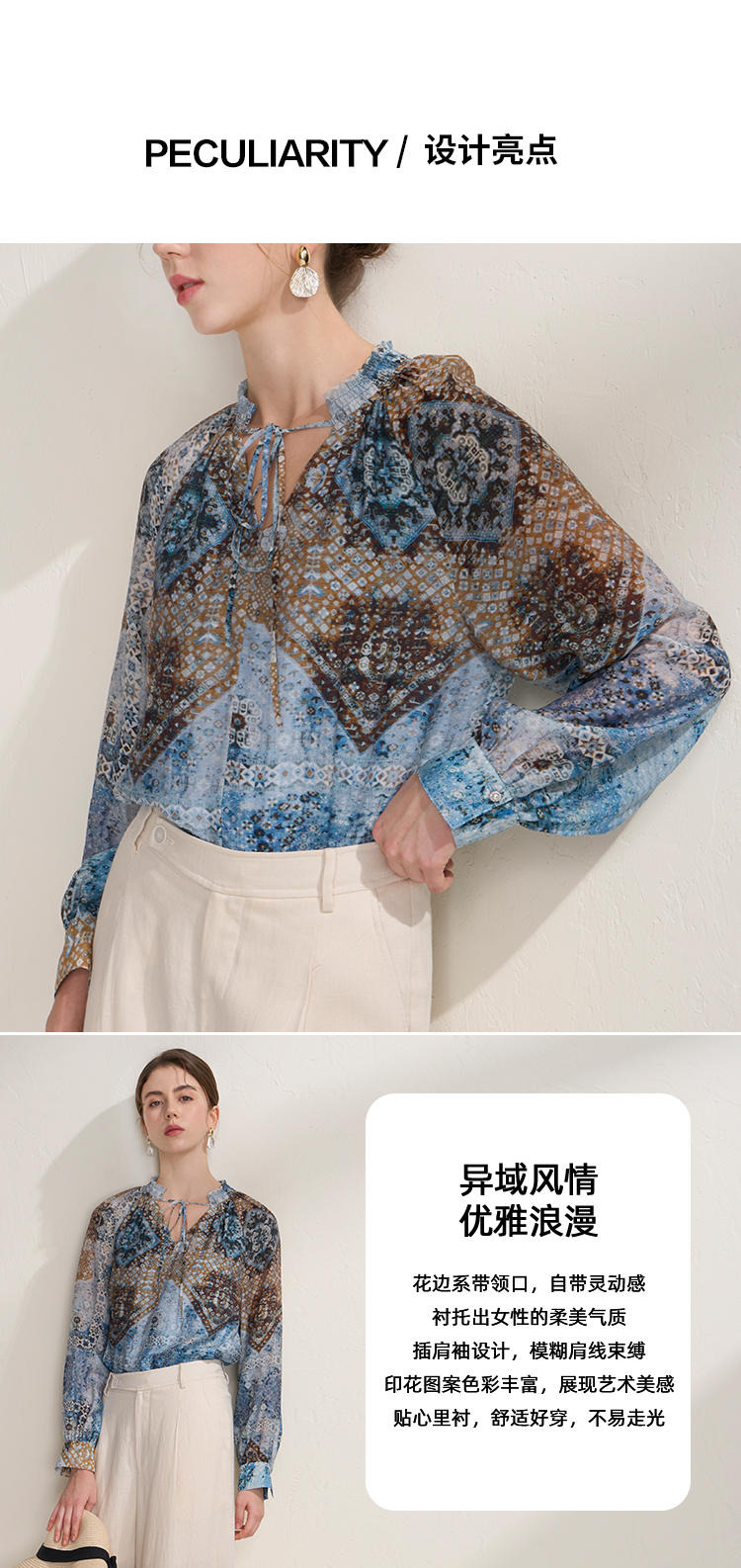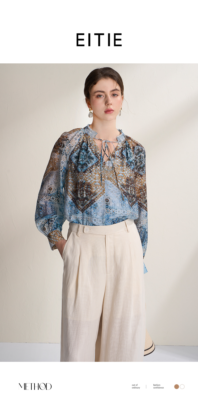 EITIE爱特爱复古丝巾印花宽松显瘦松弛感雪纺衫上衣2026春季新款A2613107