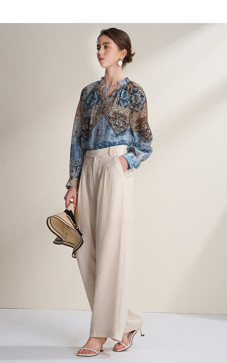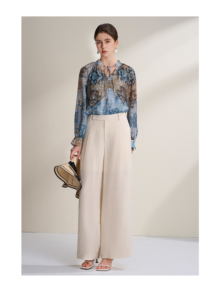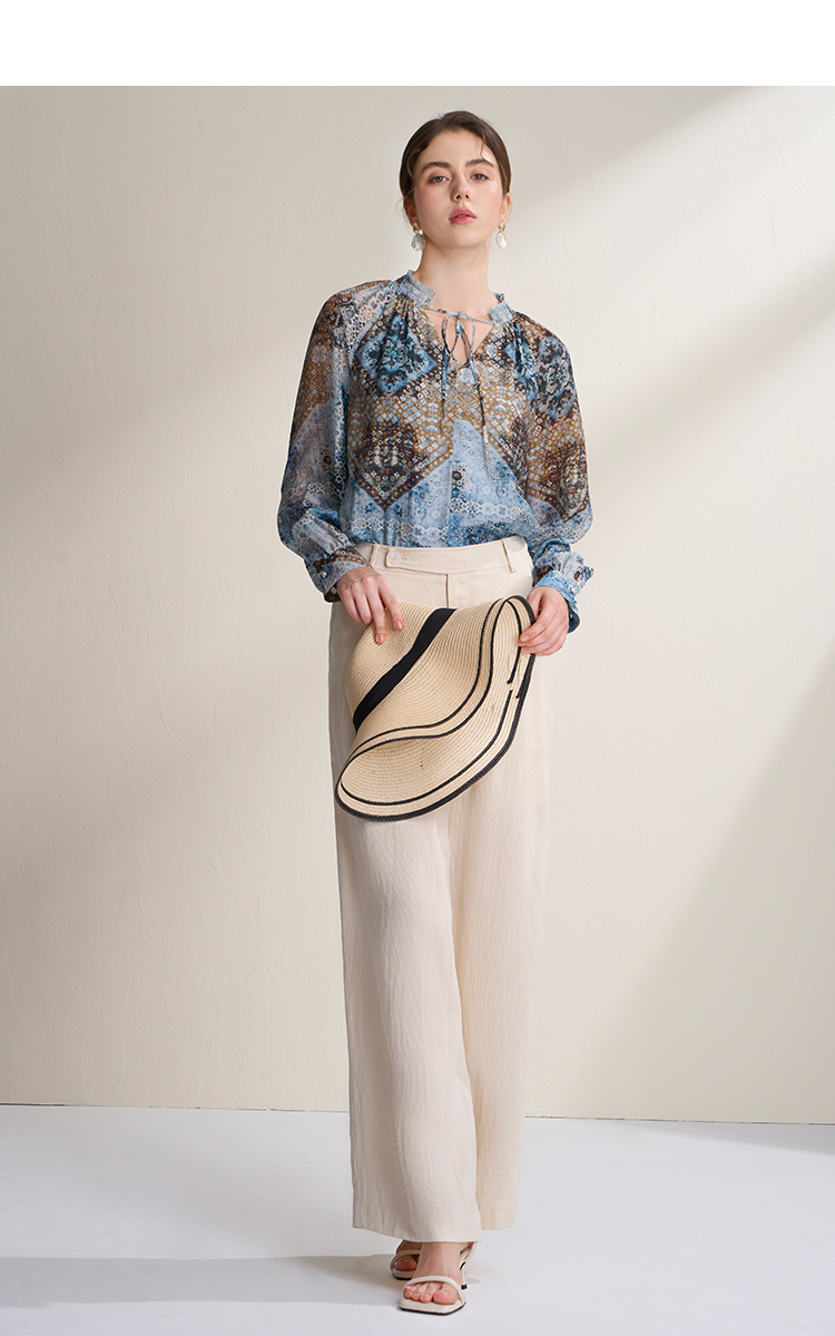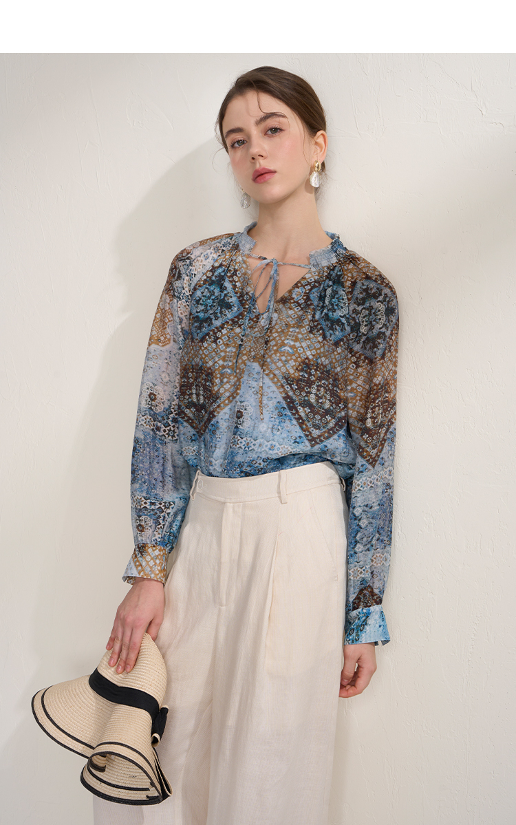 EITIE爱特爱复古丝巾印花宽松显瘦松弛感雪纺衫上衣2026春季新款A2613107