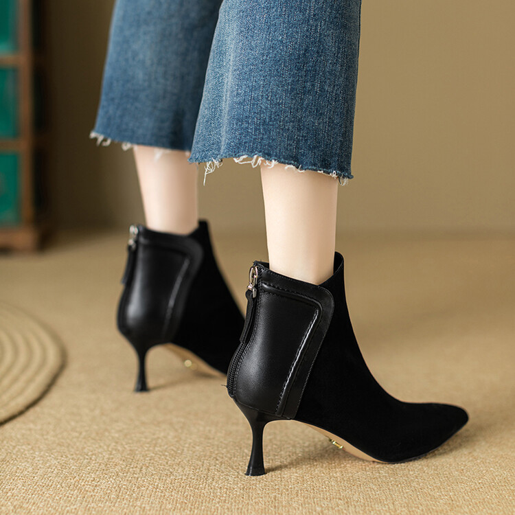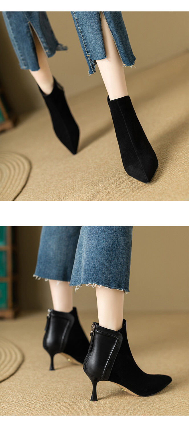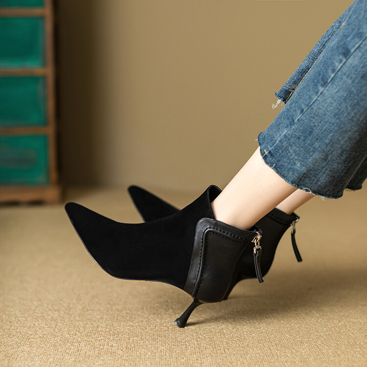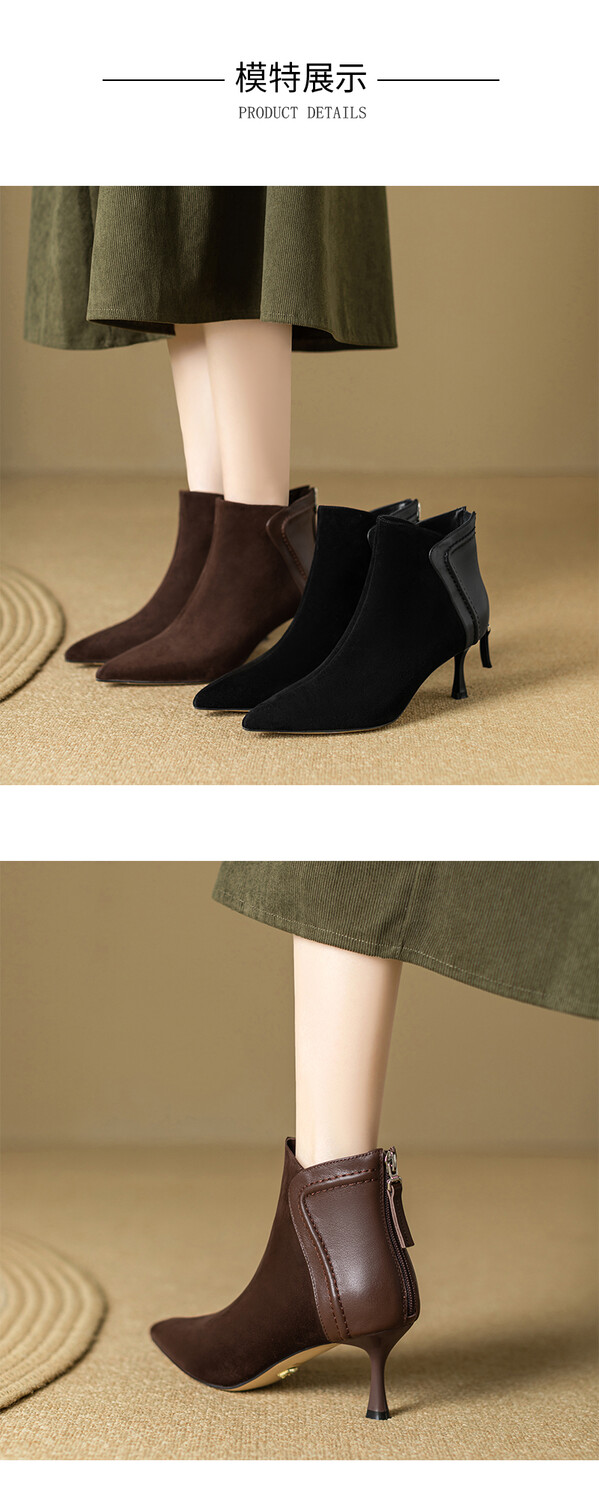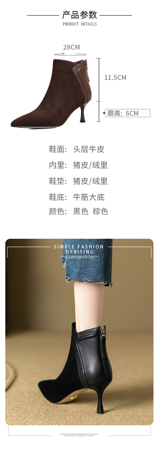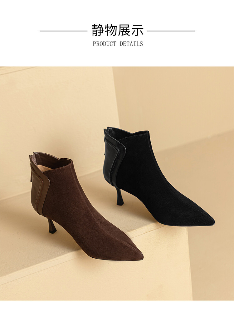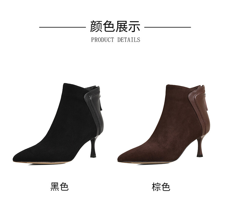 【预售5天】尖头短靴女细跟秋冬新款气质高跟短筒女靴磨砂皮拼接裸靴XKDY&X1737