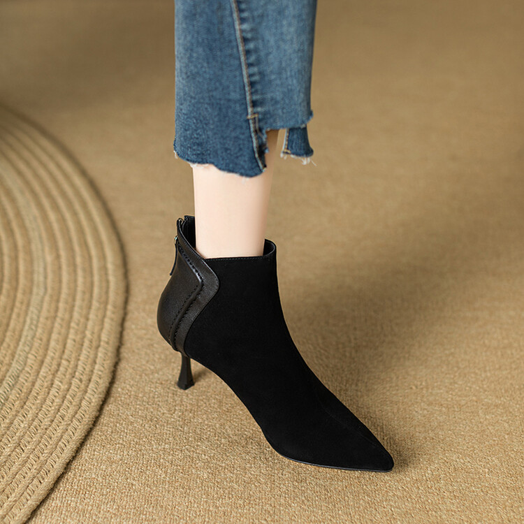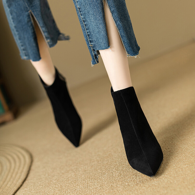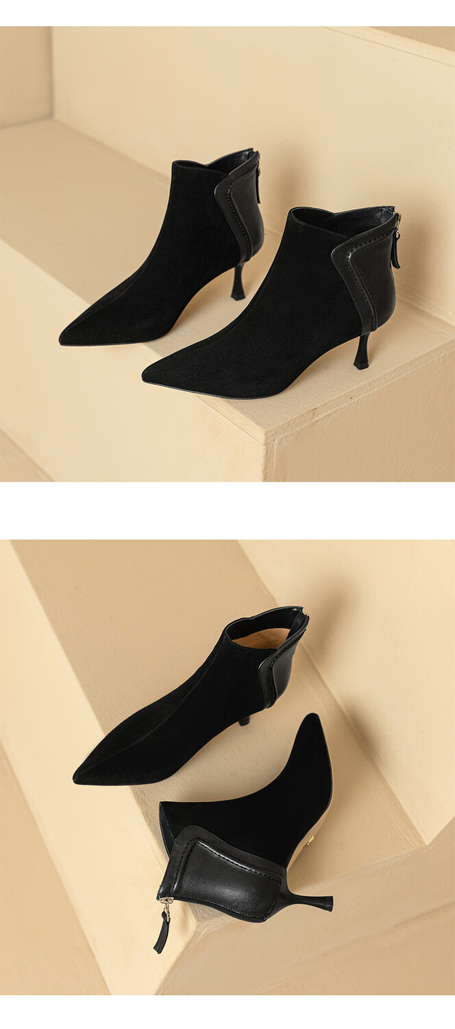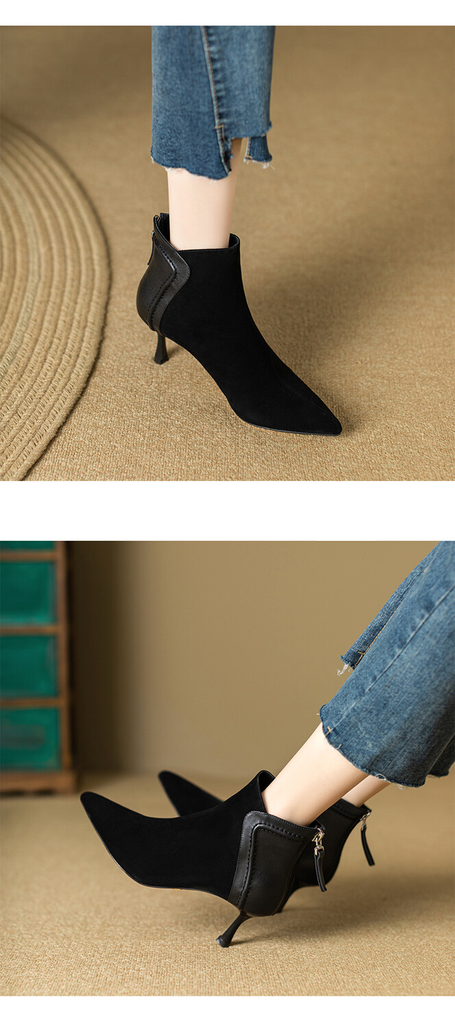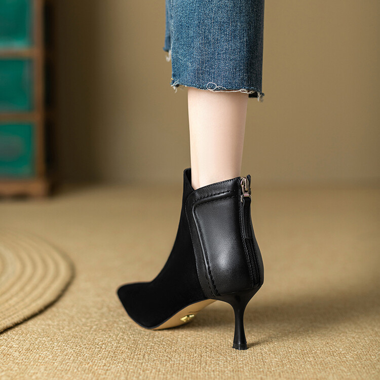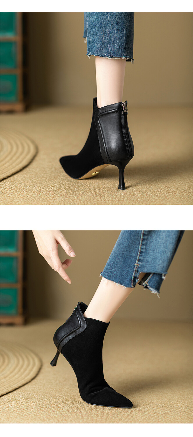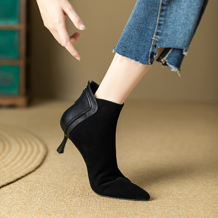 【预售5天】尖头短靴女细跟秋冬新款气质高跟短筒女靴磨砂皮拼接裸靴XKDY&X1737