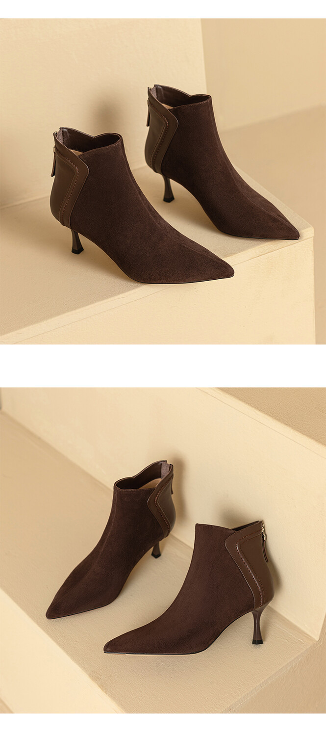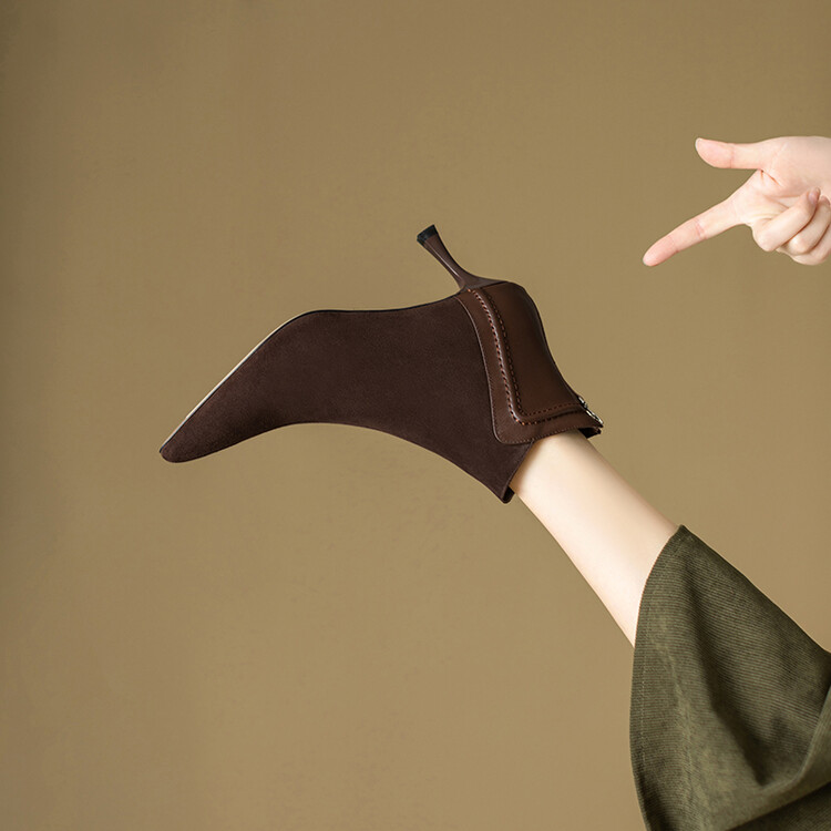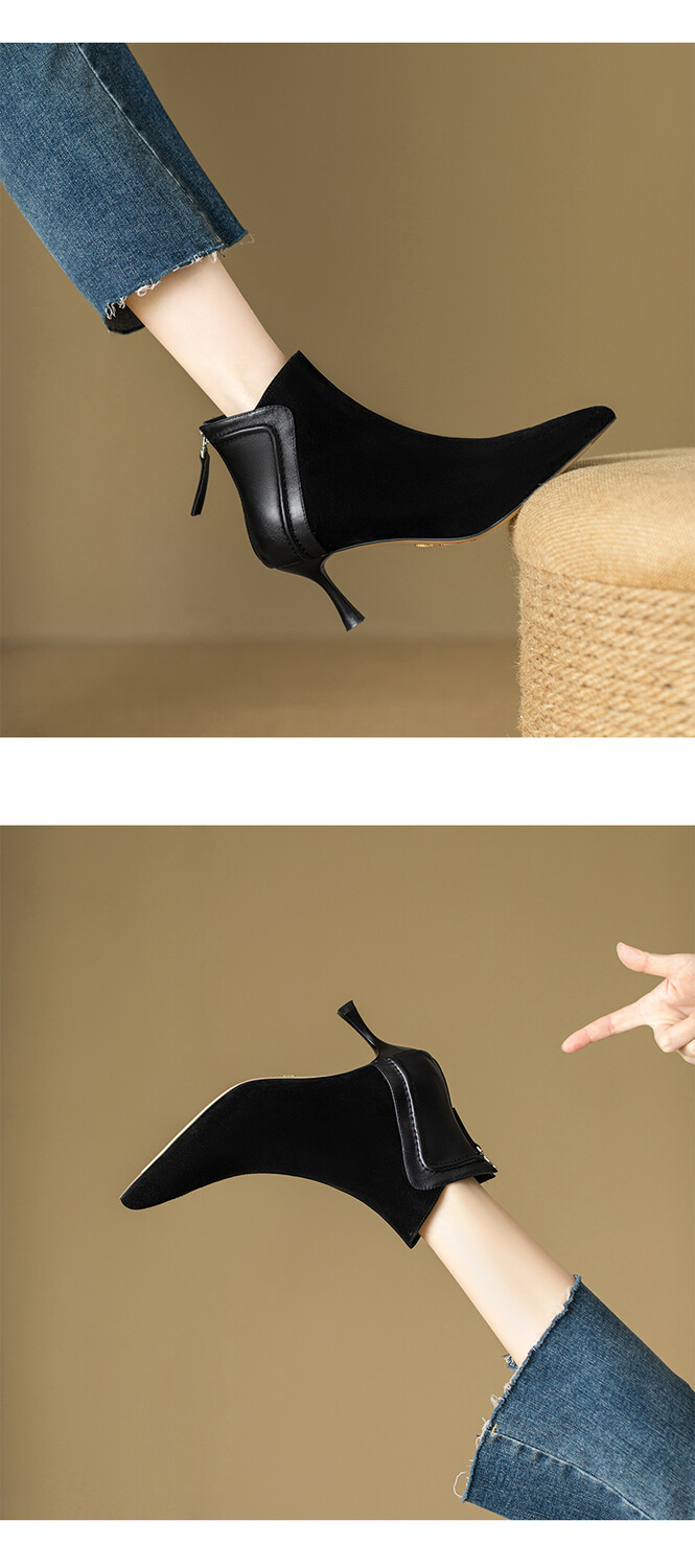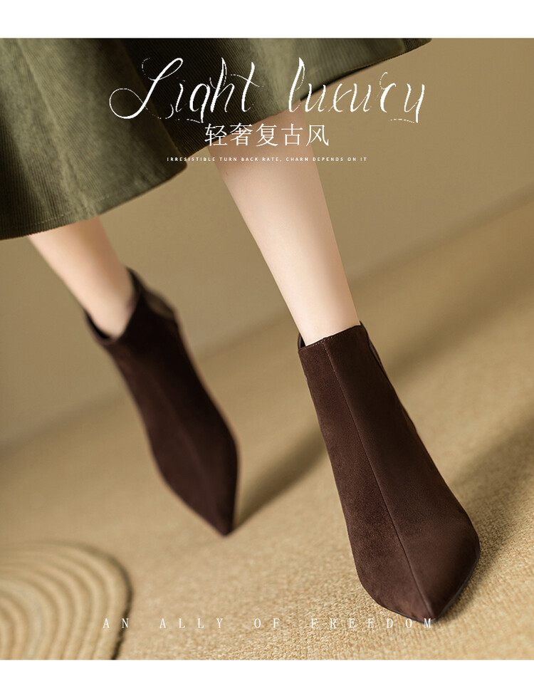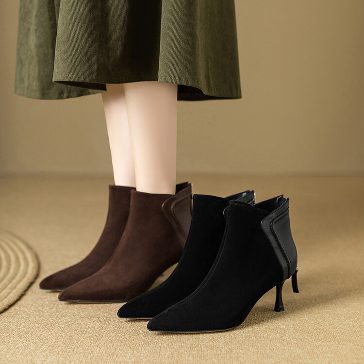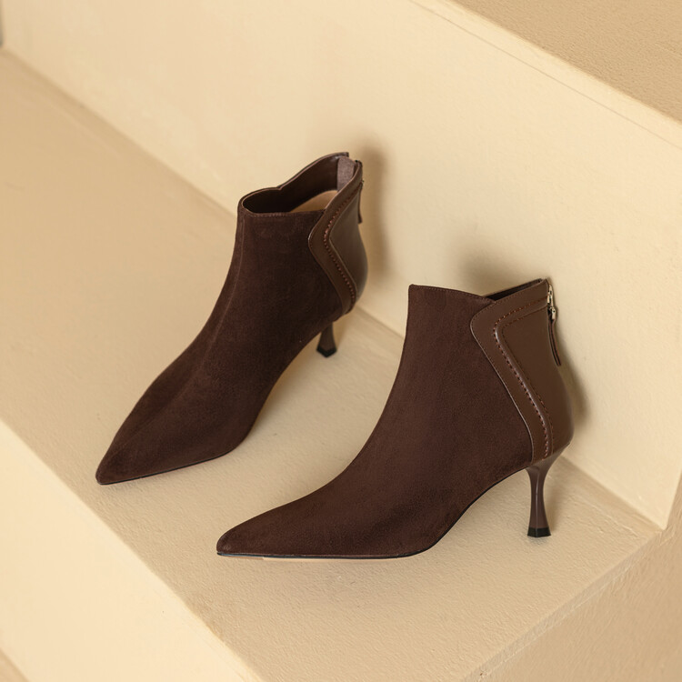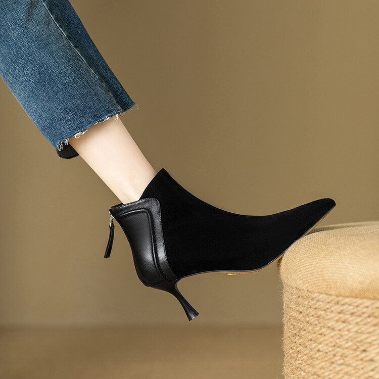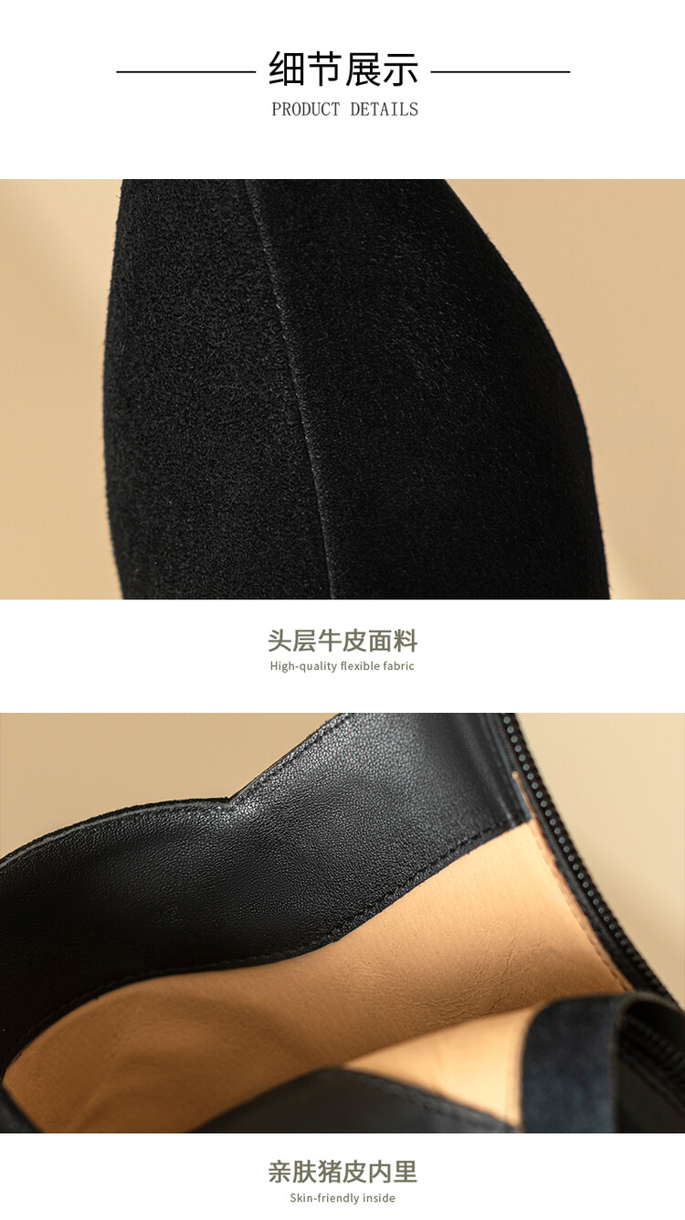 【预售5天】尖头短靴女细跟秋冬新款气质高跟短筒女靴磨砂皮拼接裸靴XKDY&X1737