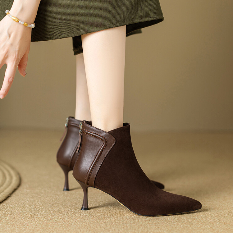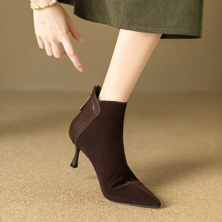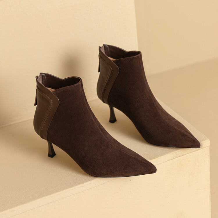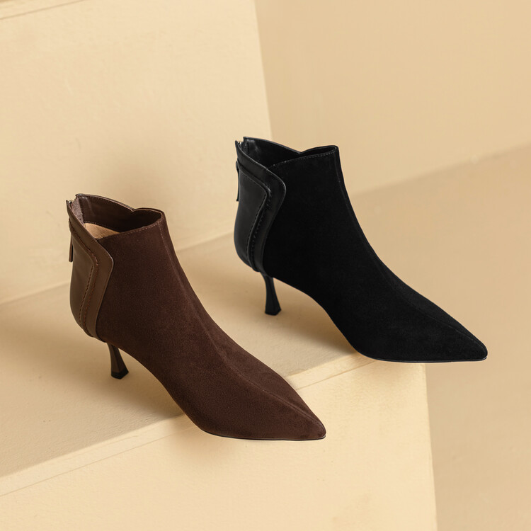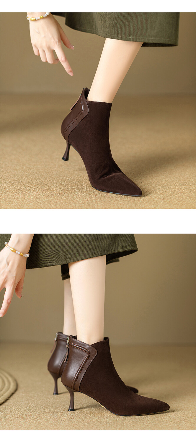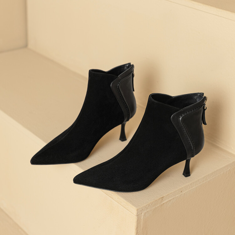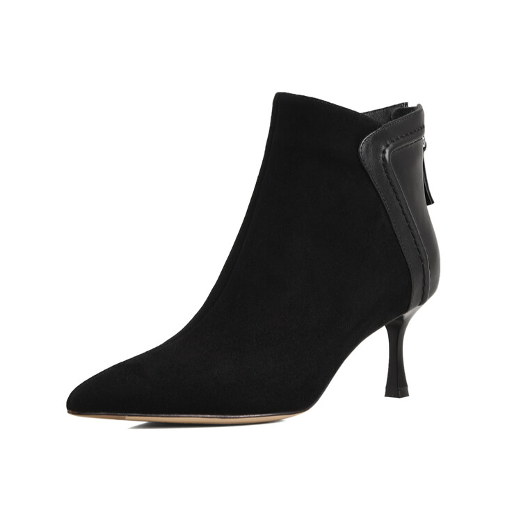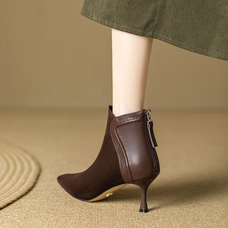 【预售5天】尖头短靴女细跟秋冬新款气质高跟短筒女靴磨砂皮拼接裸靴XKDY&X1737