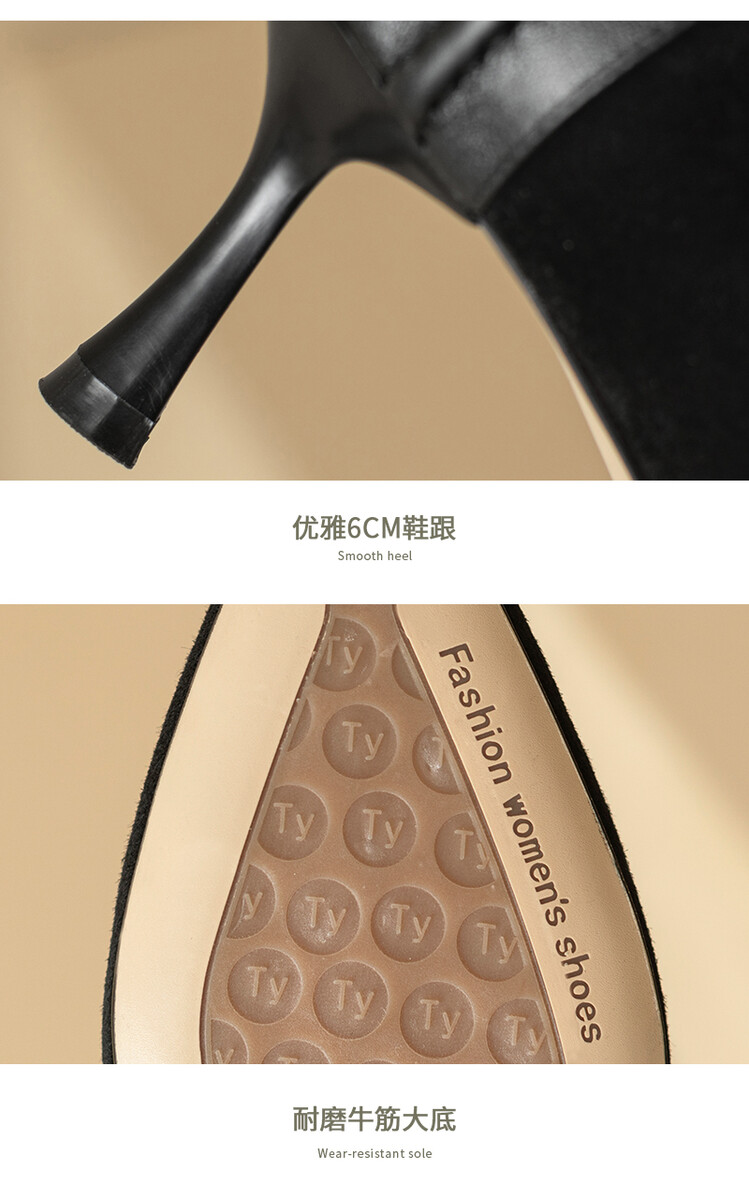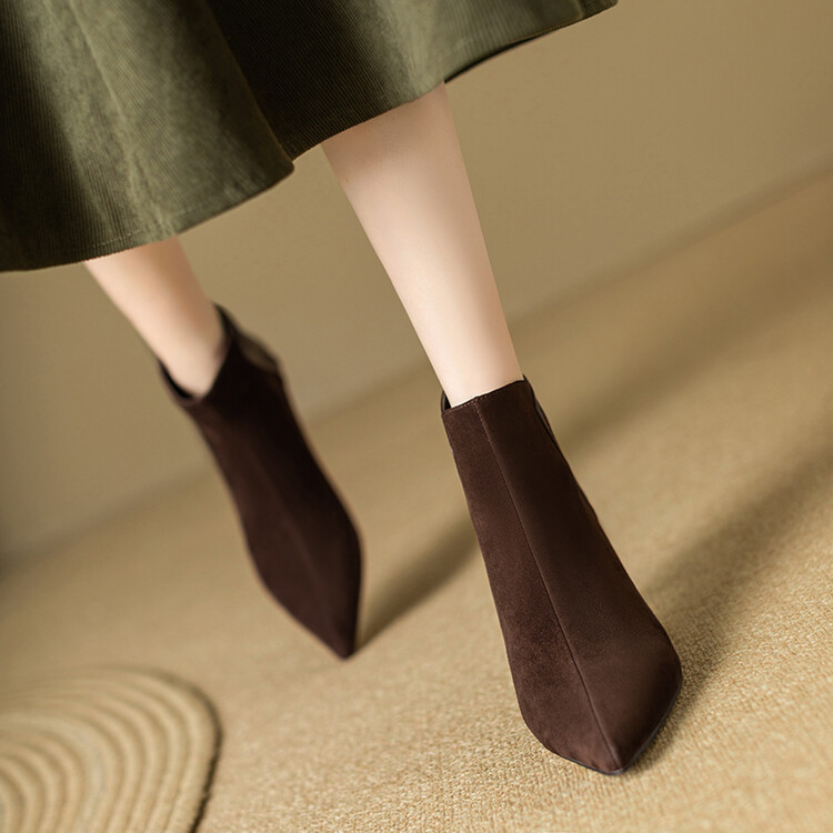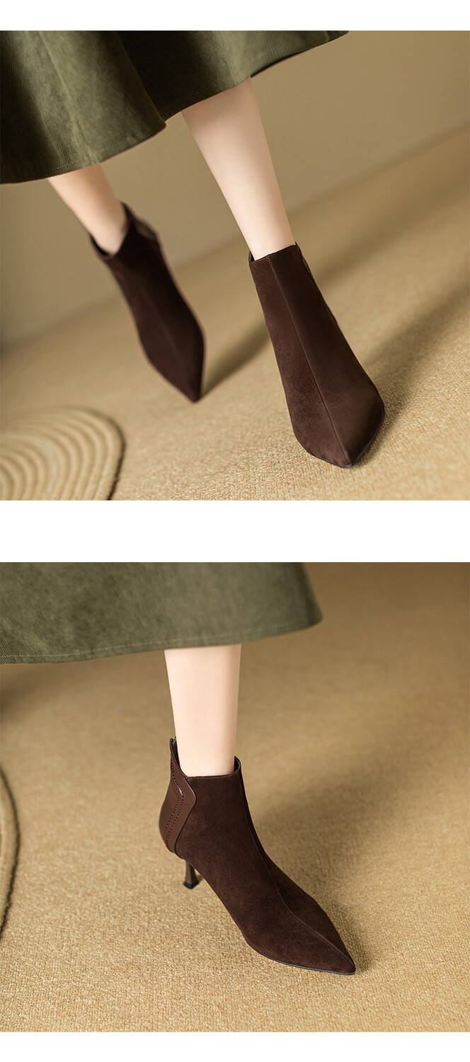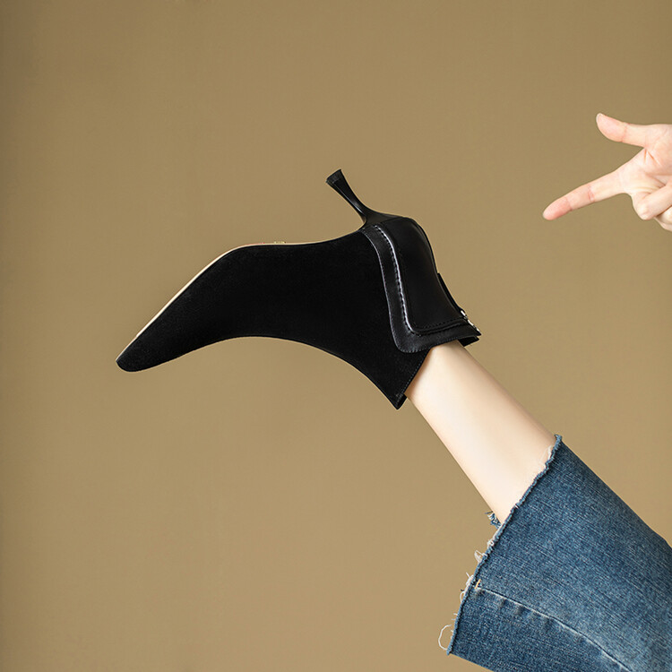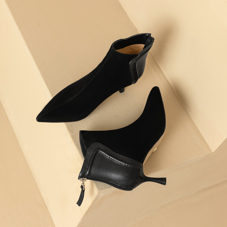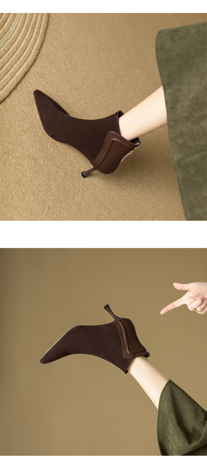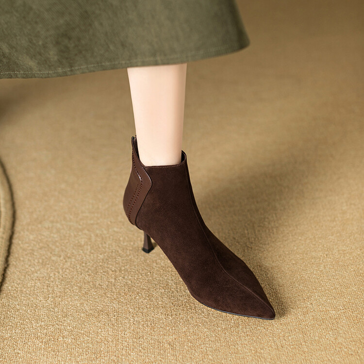 【预售5天】尖头短靴女细跟秋冬新款气质高跟短筒女靴磨砂皮拼接裸靴XKDY&X1737