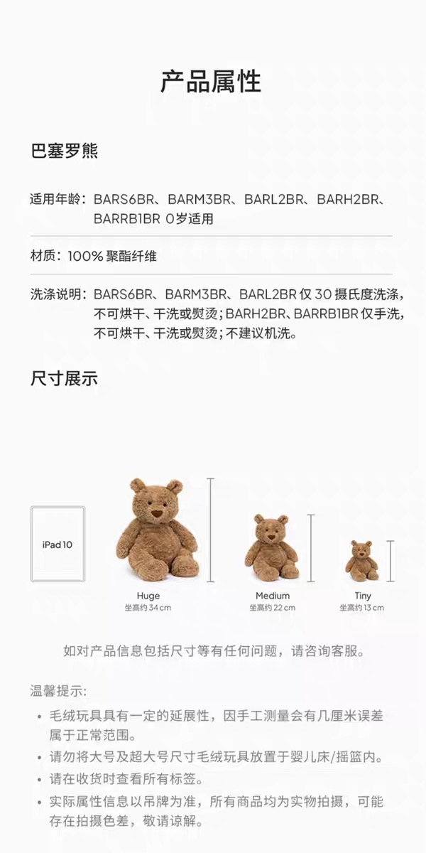 💰大号79小号69顺丰包邮 已入库 国内代工厂回货 正品Jallycat巴塞罗熊毛绒玩偶~官网售价490 已热销40000➕⚠️分大号和中号‼️防尘袋包装 作礼物送孩子 送对象或自留当摆件都合适!