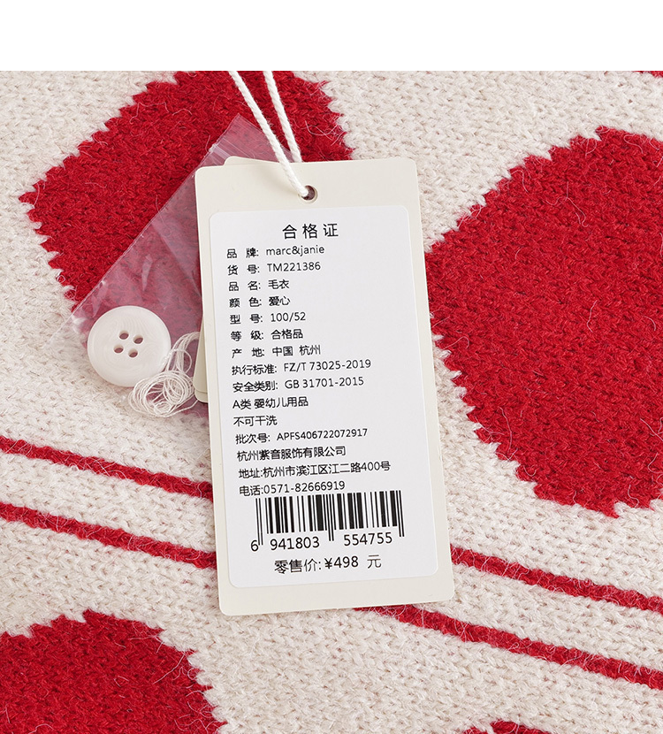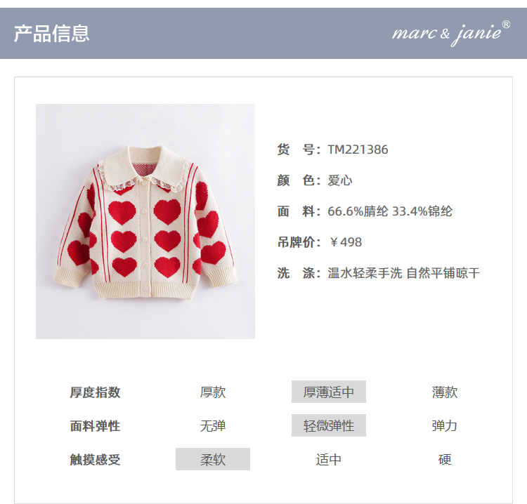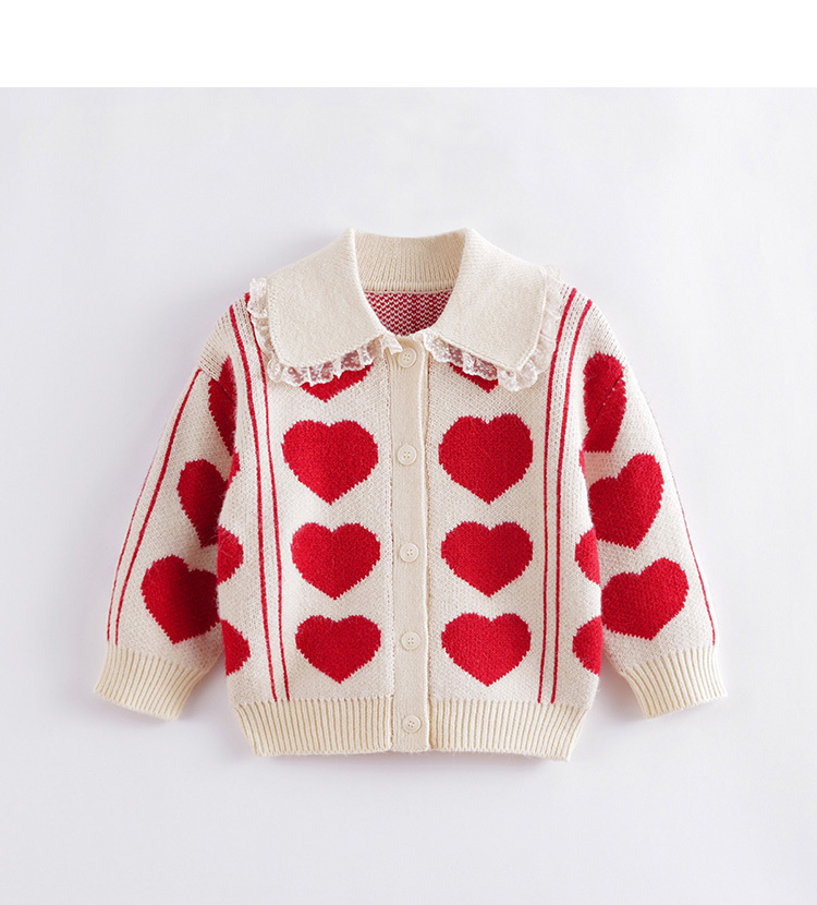 【柔蓝绒】马克珍妮冬款女童爱心提花毛衣 儿童针织开衫221386