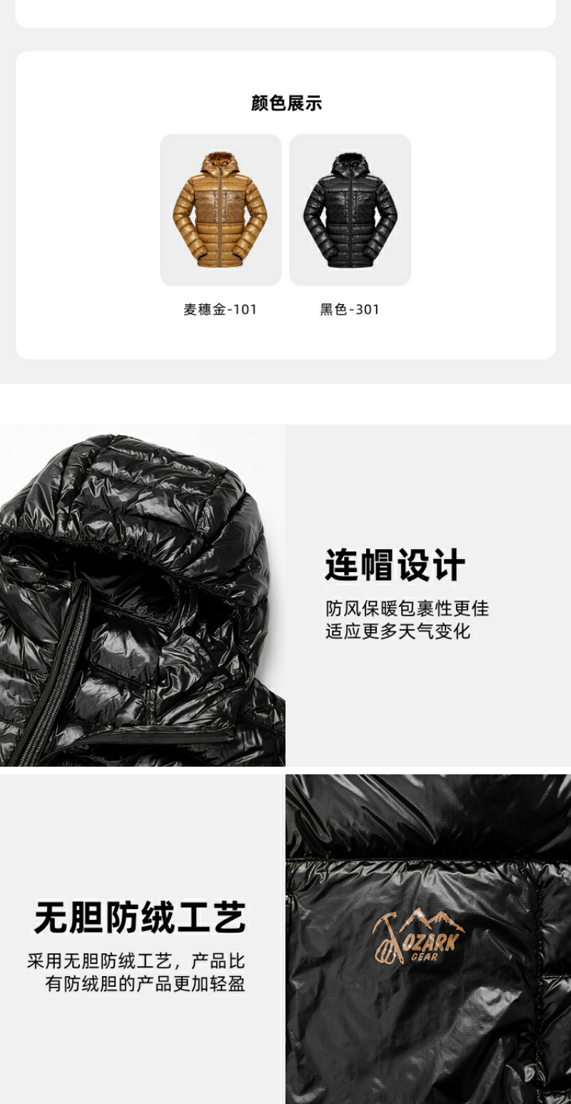 OZARK奥索卡户外23男款秋冬新品1000蓬超轻白鹅绒羽绒服156625