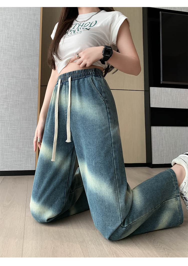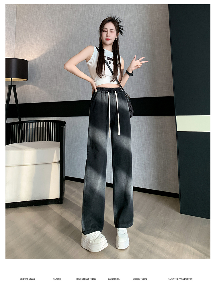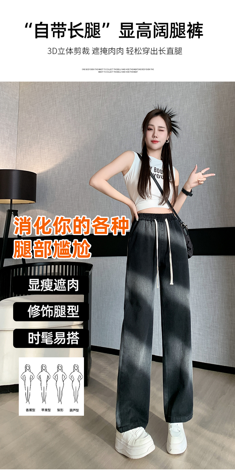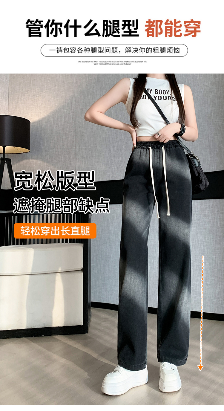 【特惠不退换】渐变牛仔裤女秋百搭时尚高腰显瘦休闲简约阔腿长裤 SKW-GMX-7728#