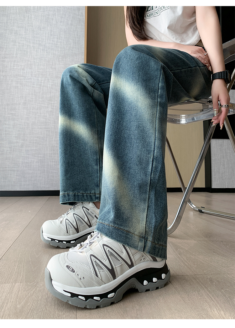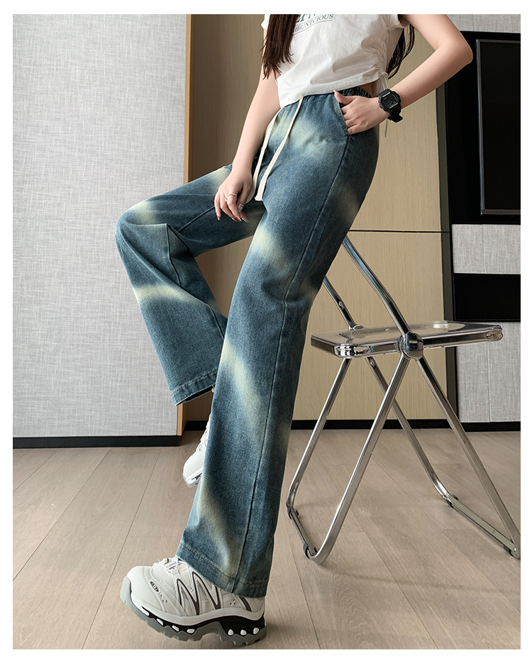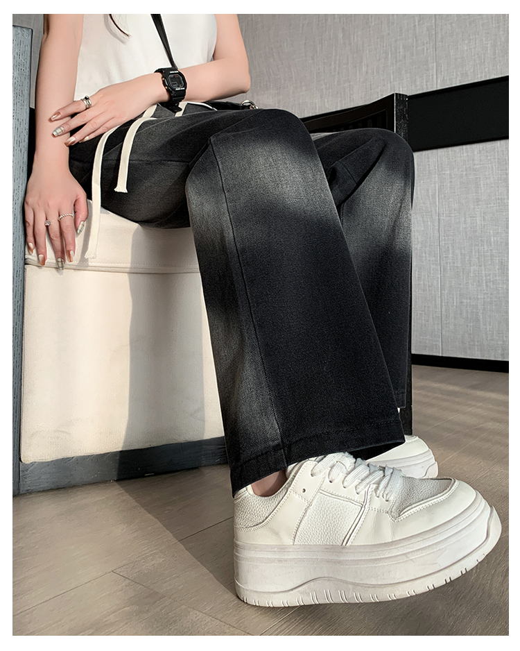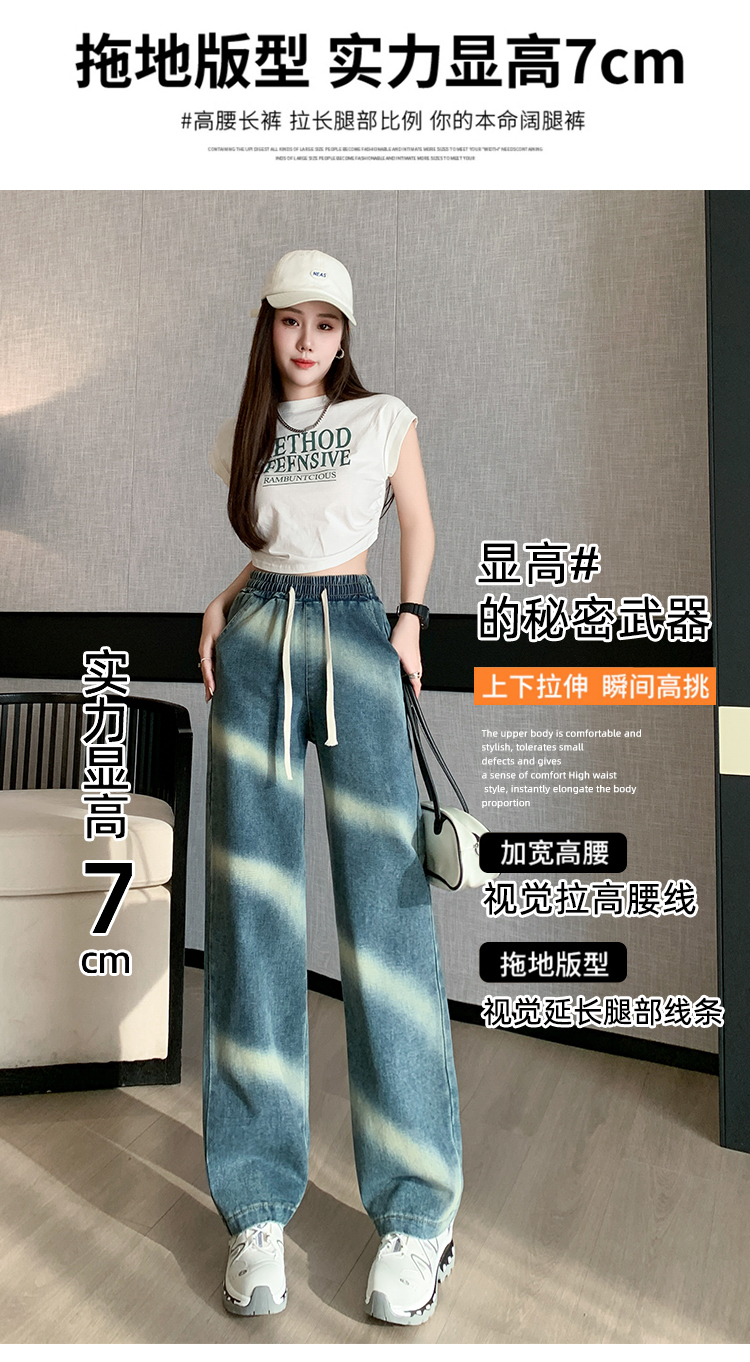 【特惠不退换】渐变牛仔裤女秋百搭时尚高腰显瘦休闲简约阔腿长裤 SKW-GMX-7728#