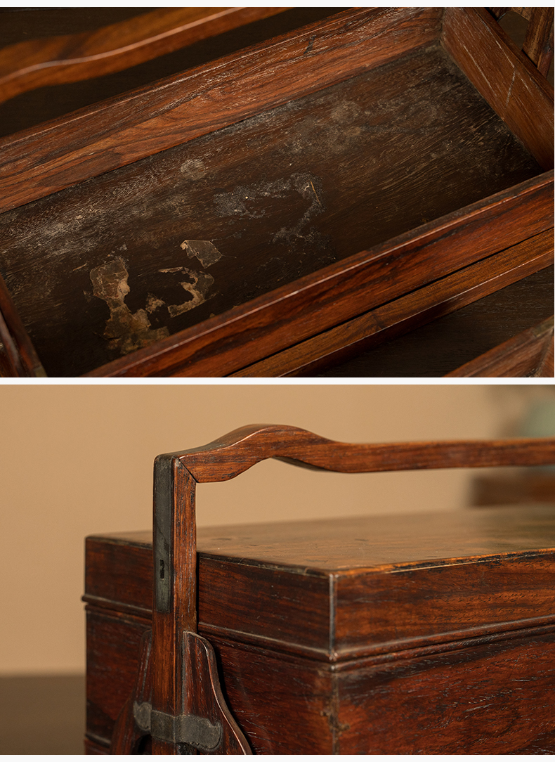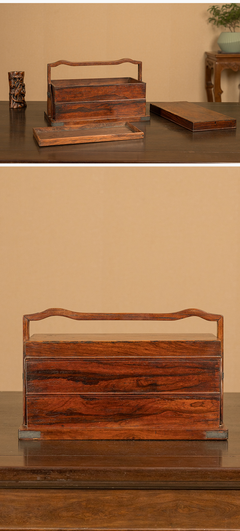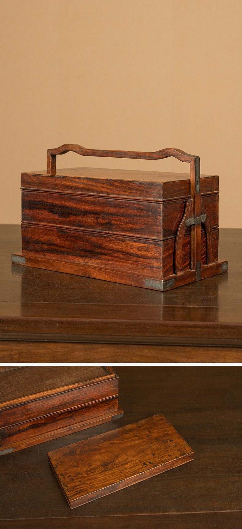 清 黄花梨镶竹丝编四抹门亮格柜摆件