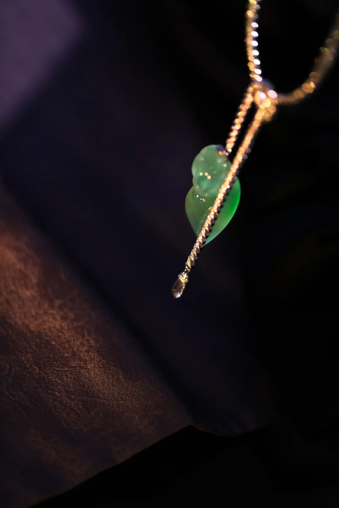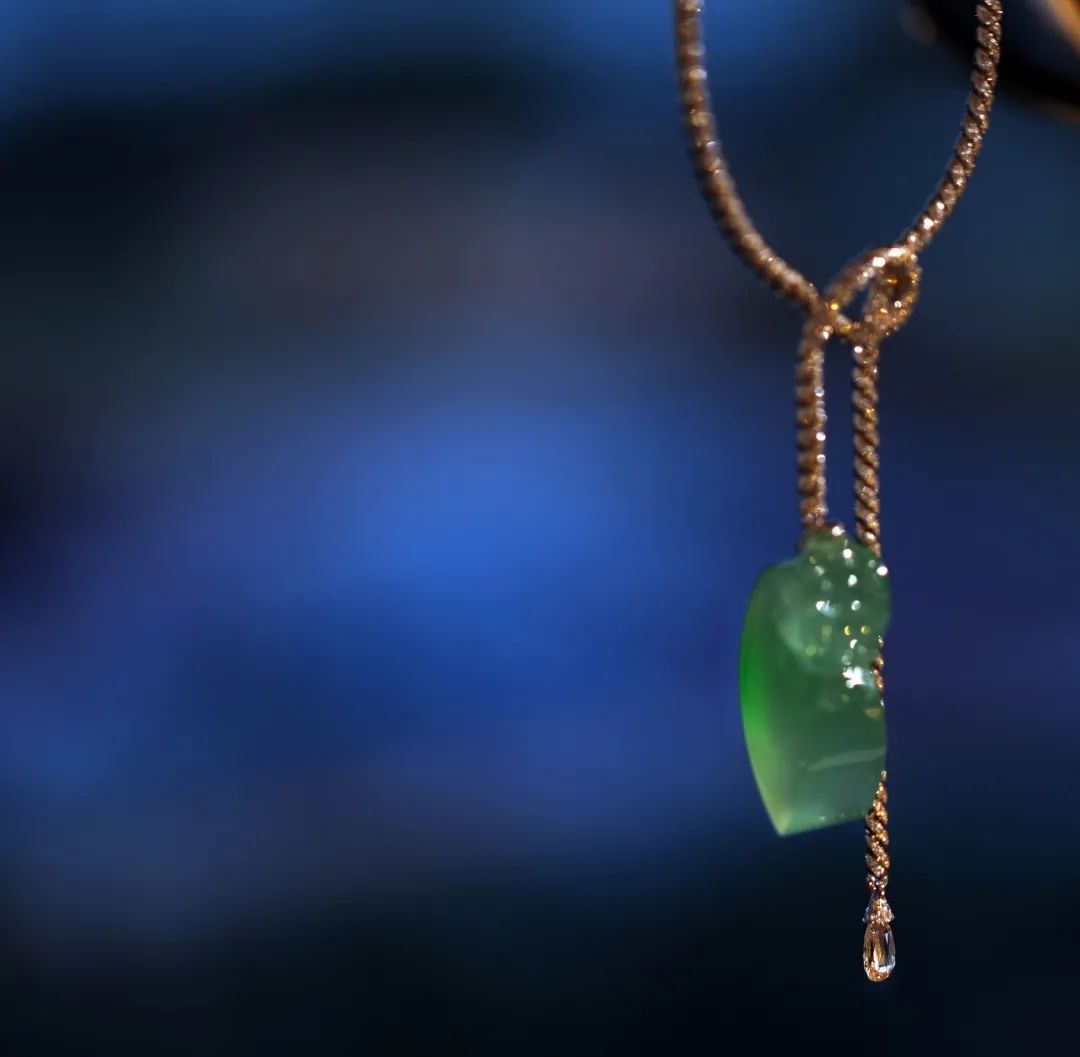 种色一体的龙石种,盈盈绿底,飘有金丝阳绿,