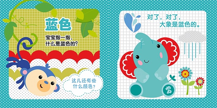 整套书4分册,分别以幼儿感兴趣的认知对象动物、数字、颜色、常见物品为主题。