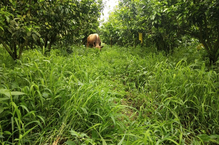 人工割草机割草以及放牛吃草。
