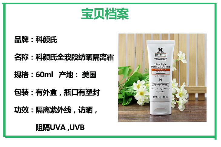 现货~科颜氏防晒隔离霜 60ml保湿型SPF50PA++++