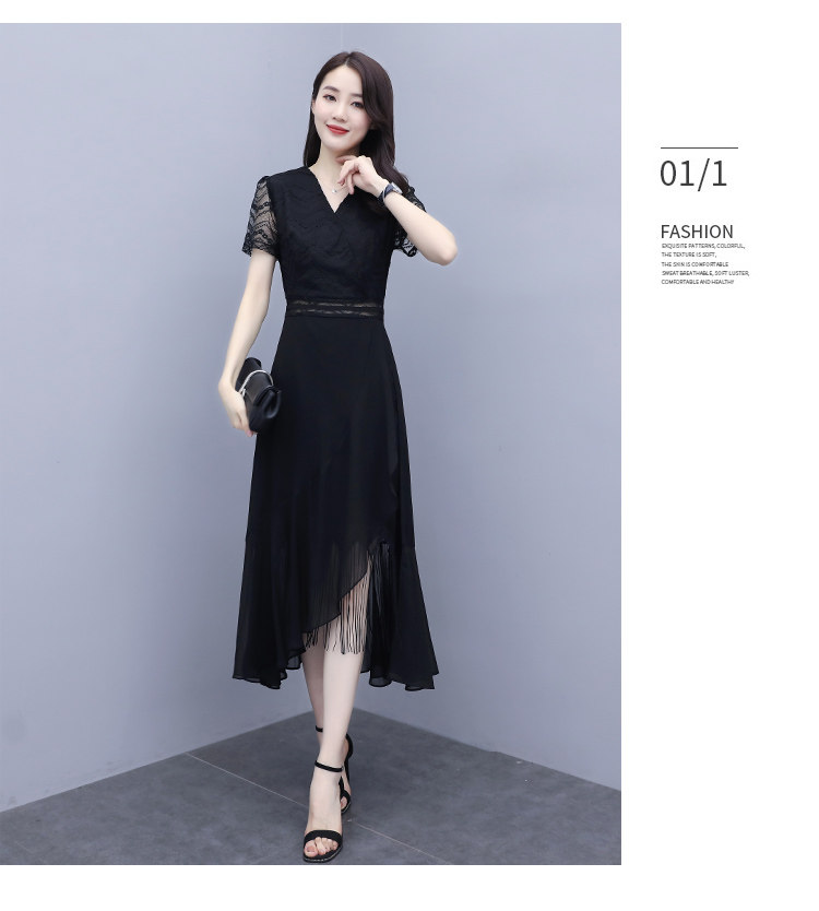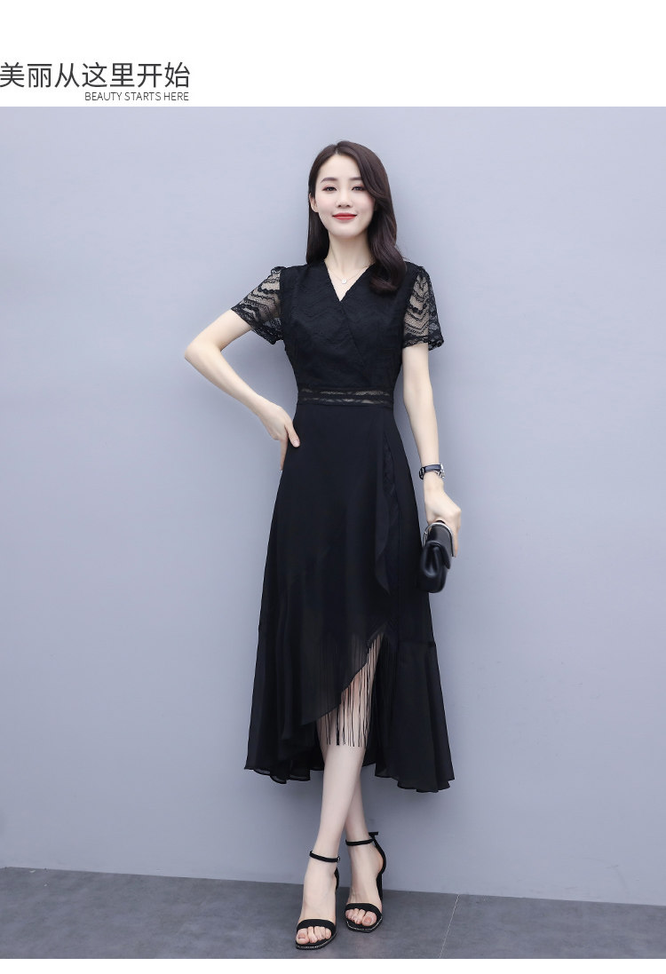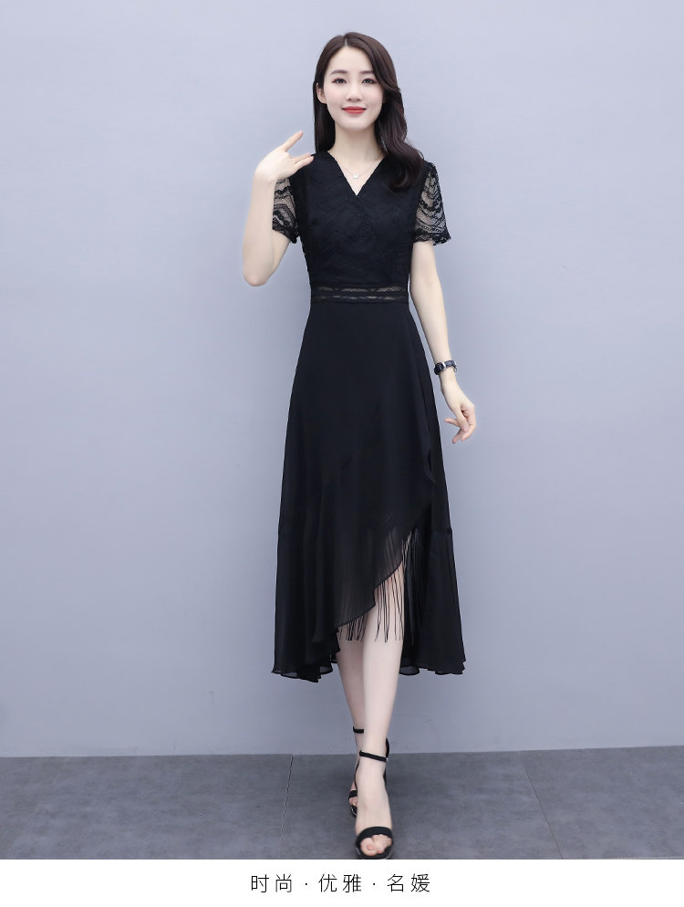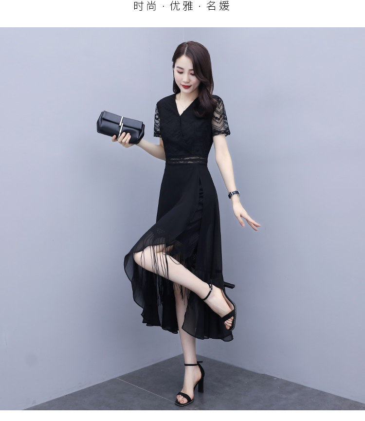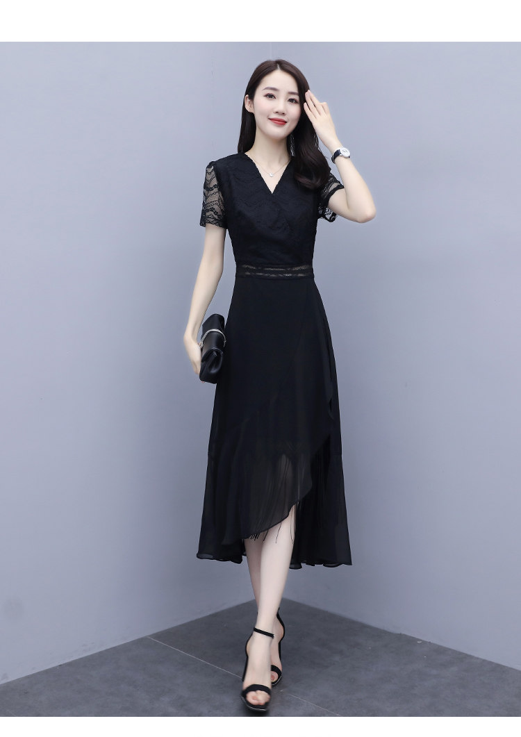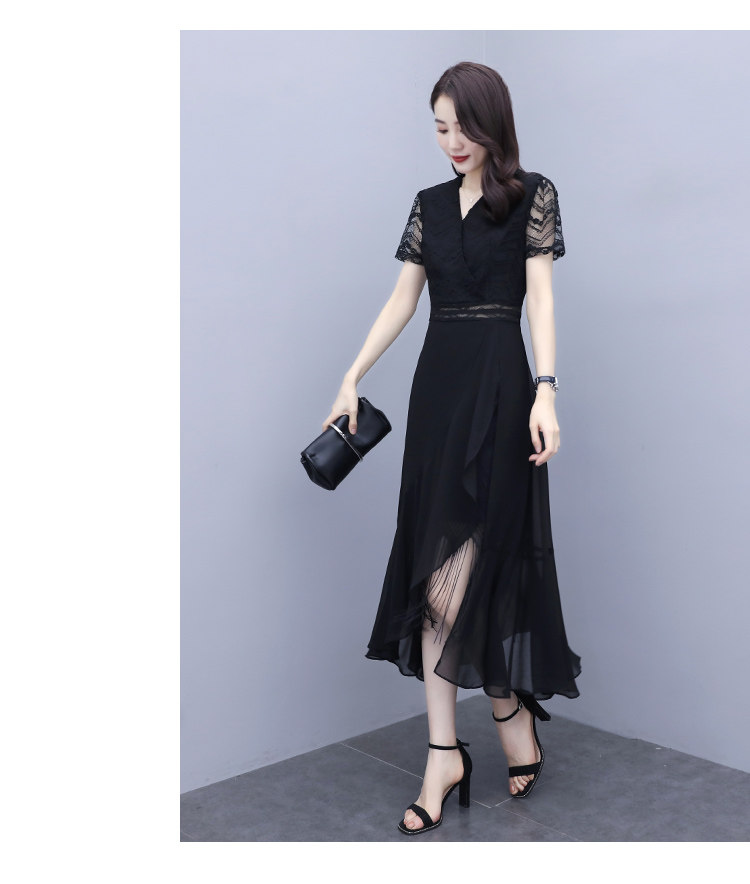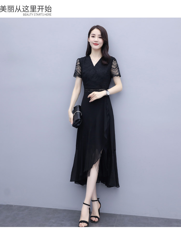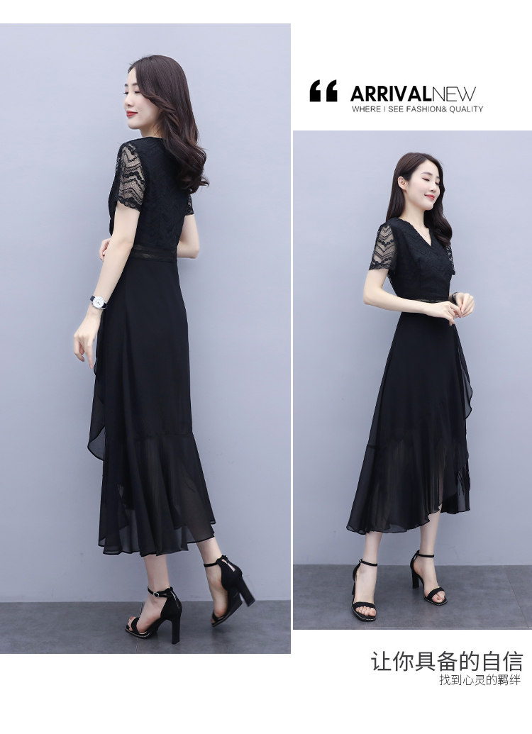 WZNH-ANY211夏季长款气质优雅时尚V领连衣裙