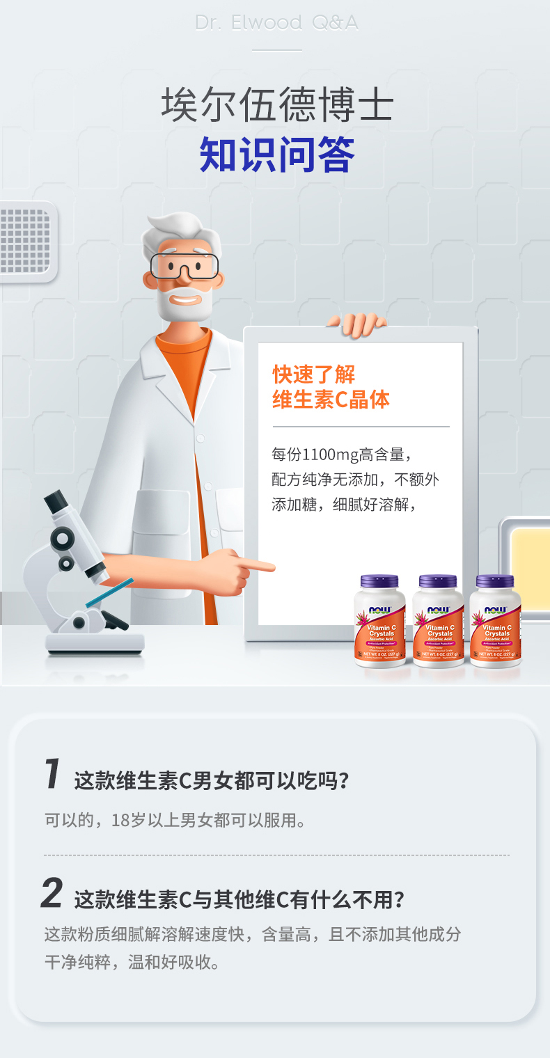 【NOW】美国 诺奥 维生素C粉 227g/瓶 vc