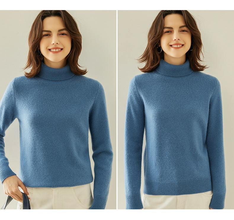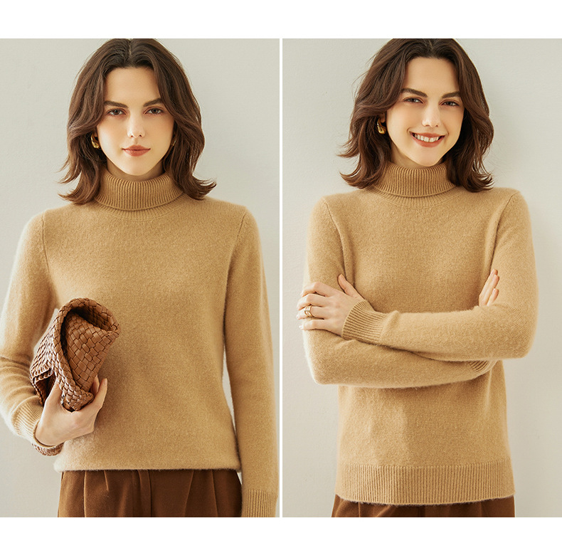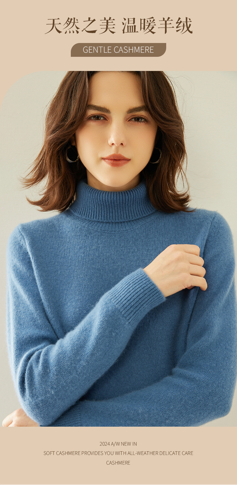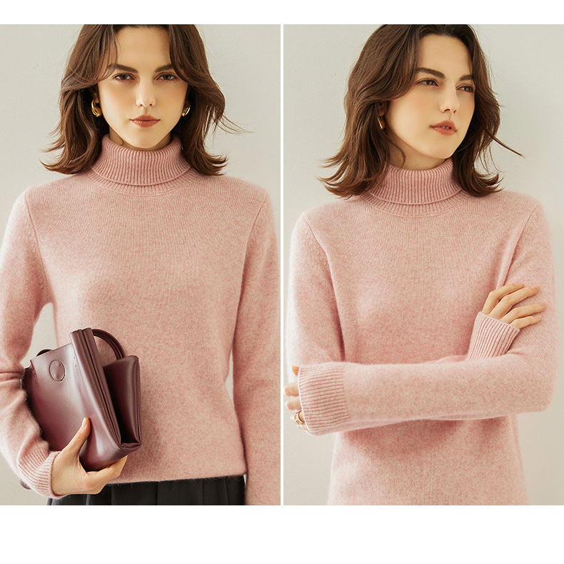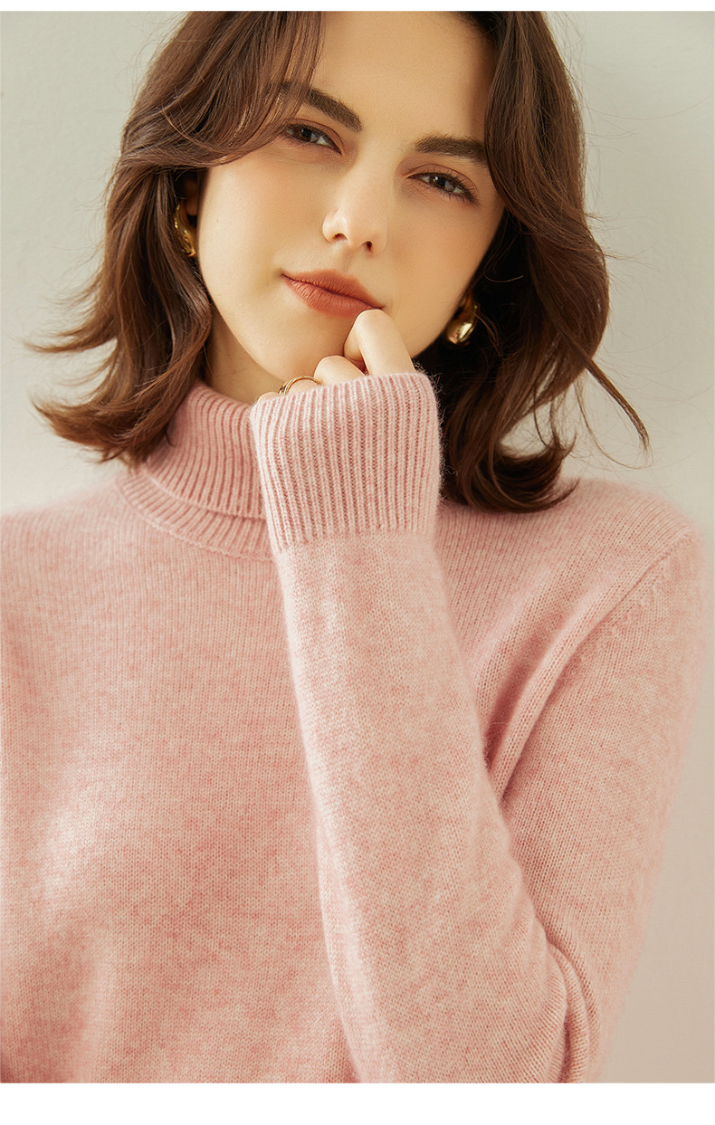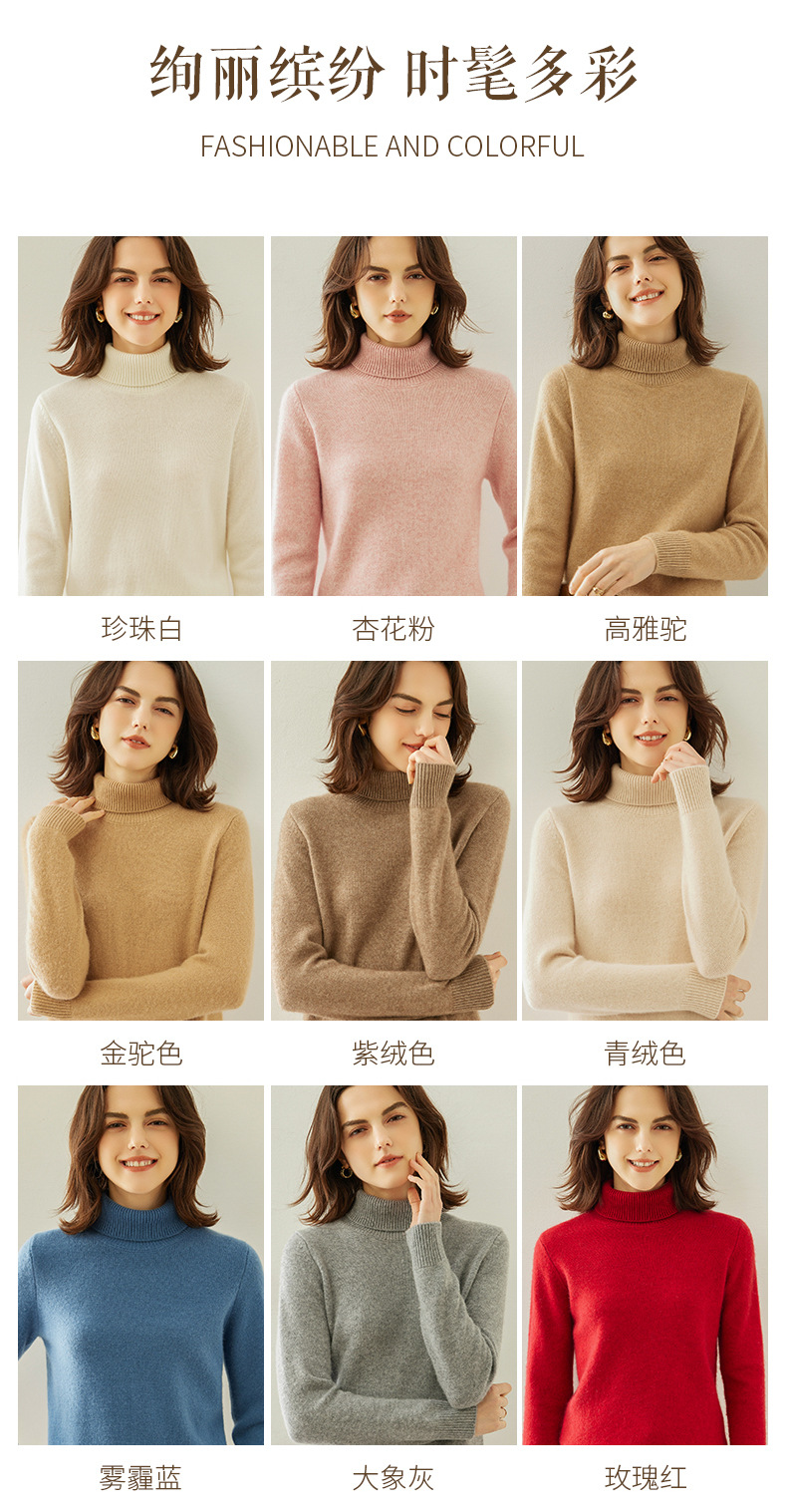 高翻领羊毛针织衫秋冬新款纯色羊毛,打底衫简约风宽松毛衣RMS-3381