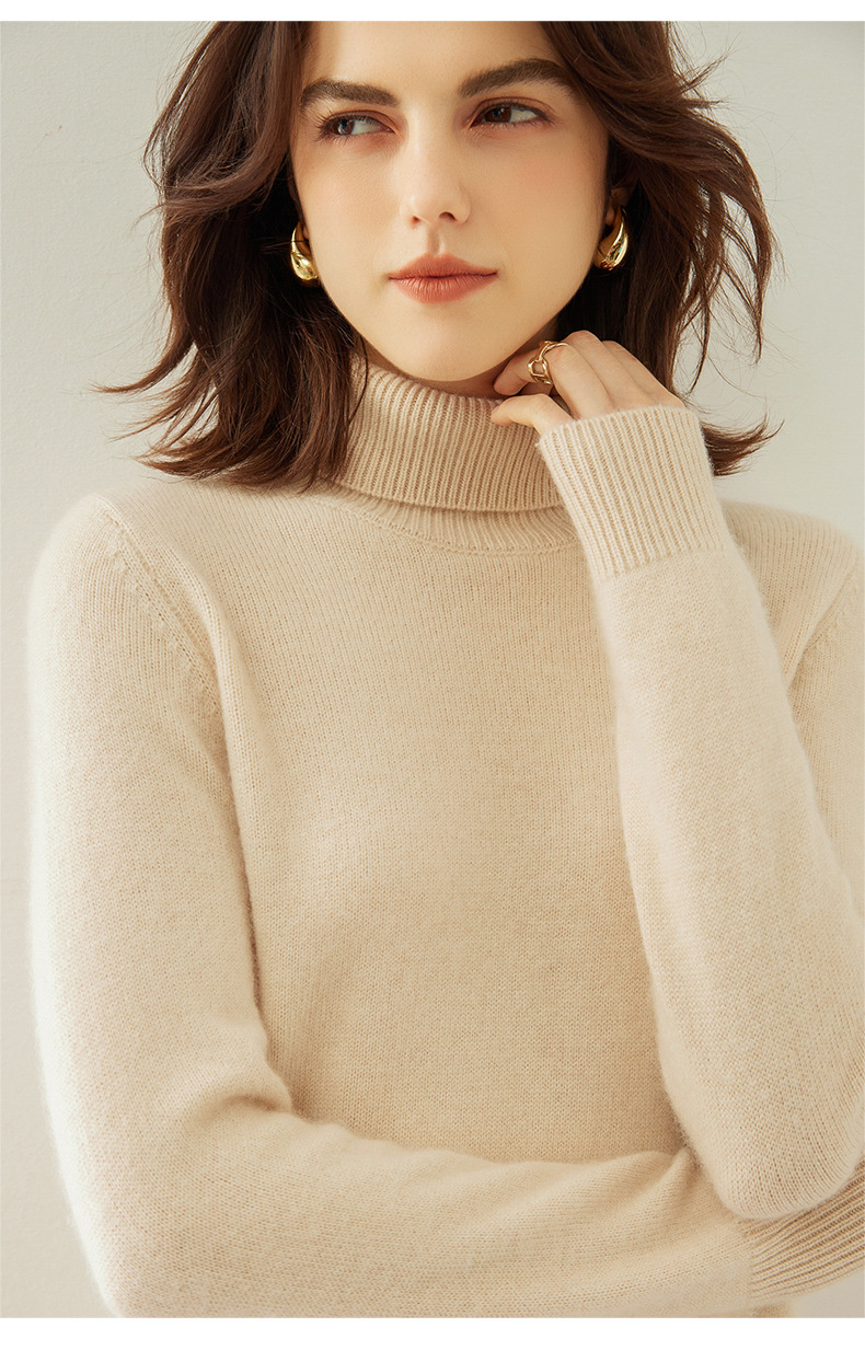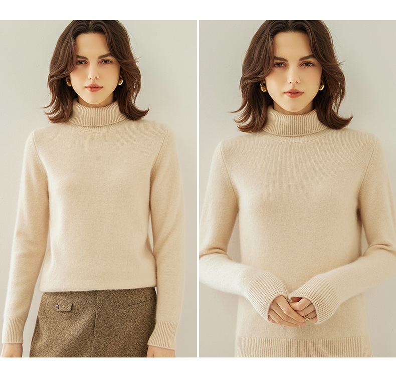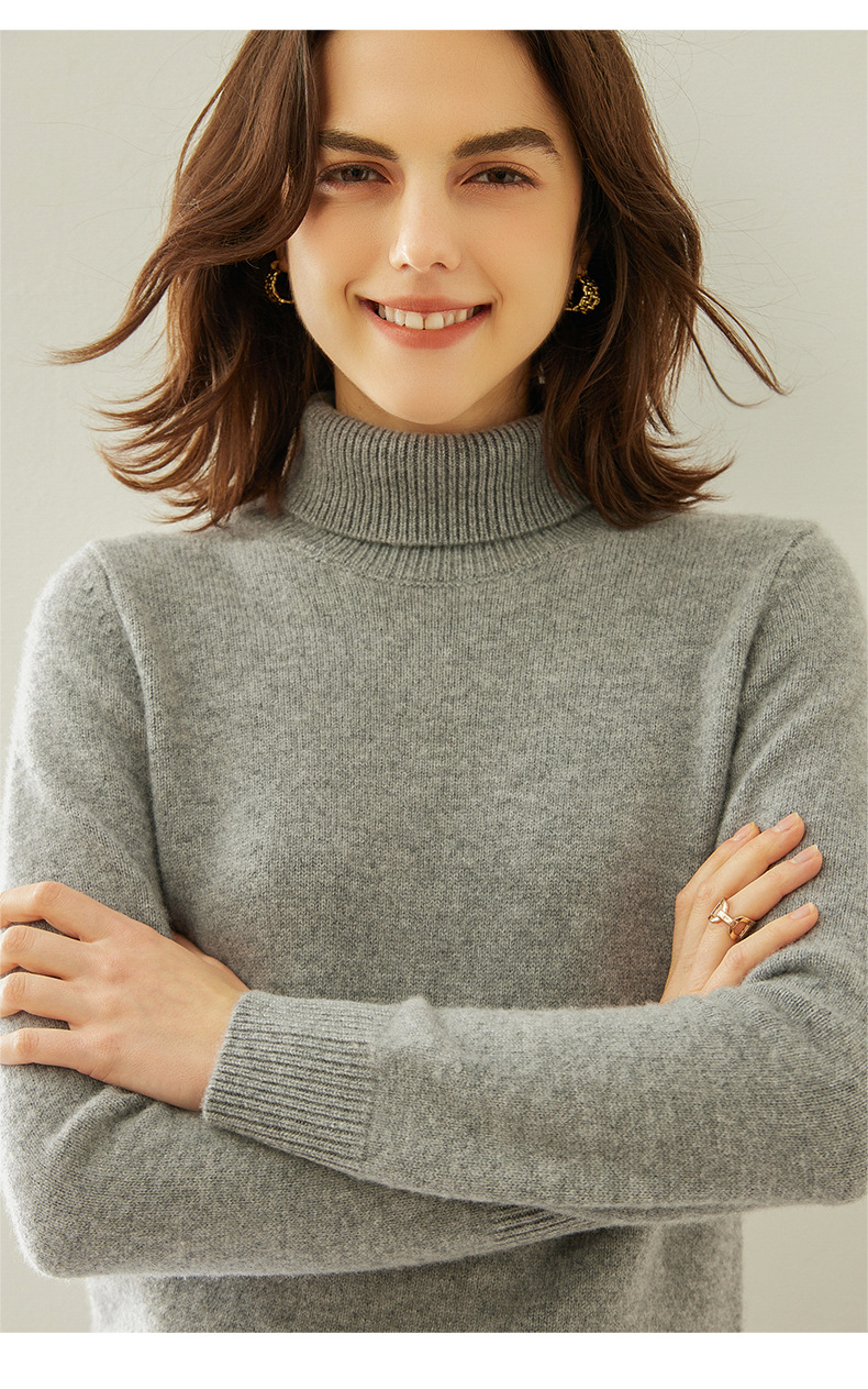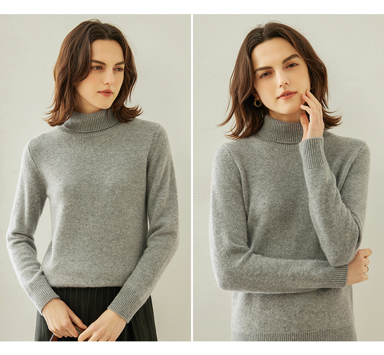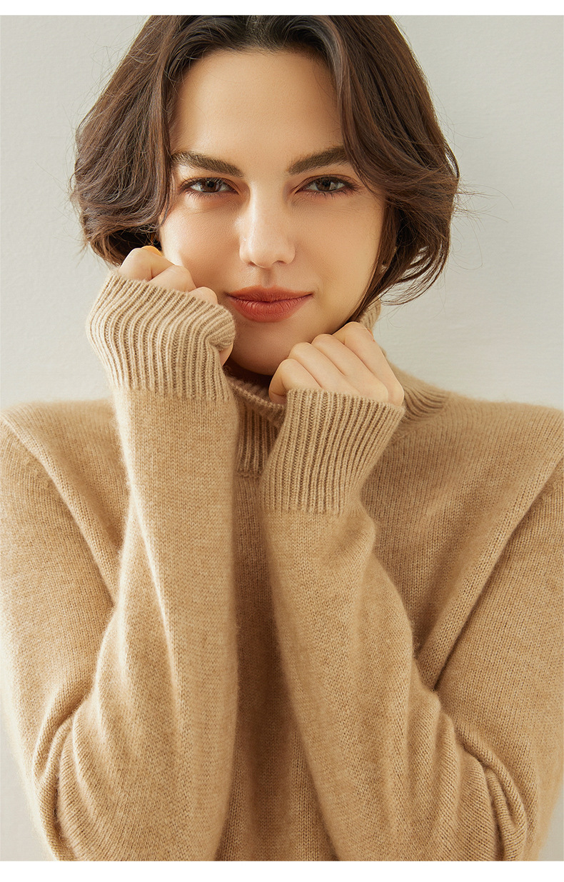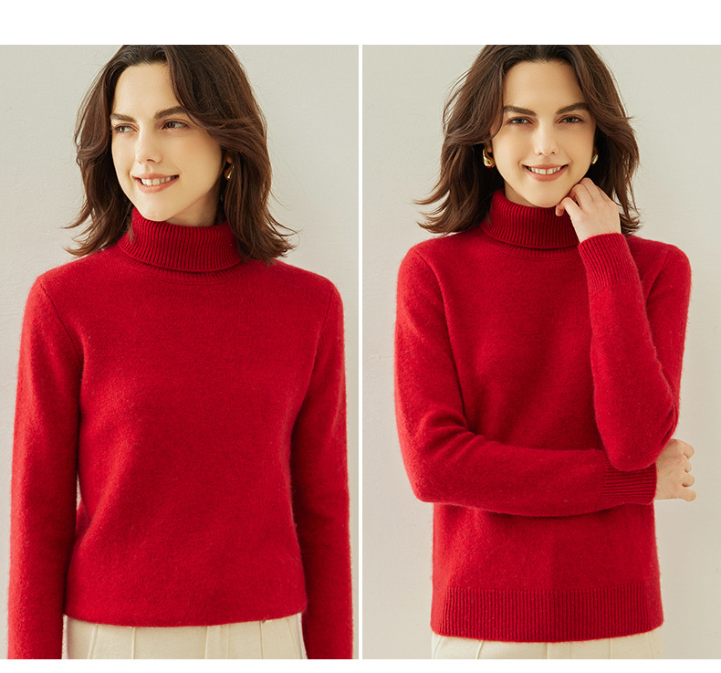 高翻领羊毛针织衫秋冬新款纯色羊毛,打底衫简约风宽松毛衣RMS-3381