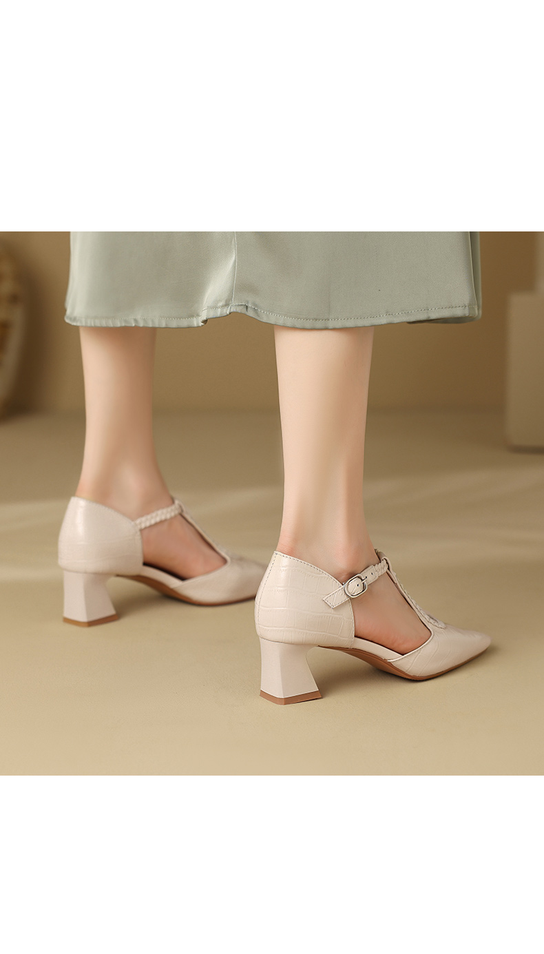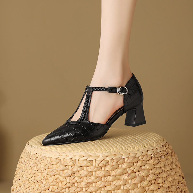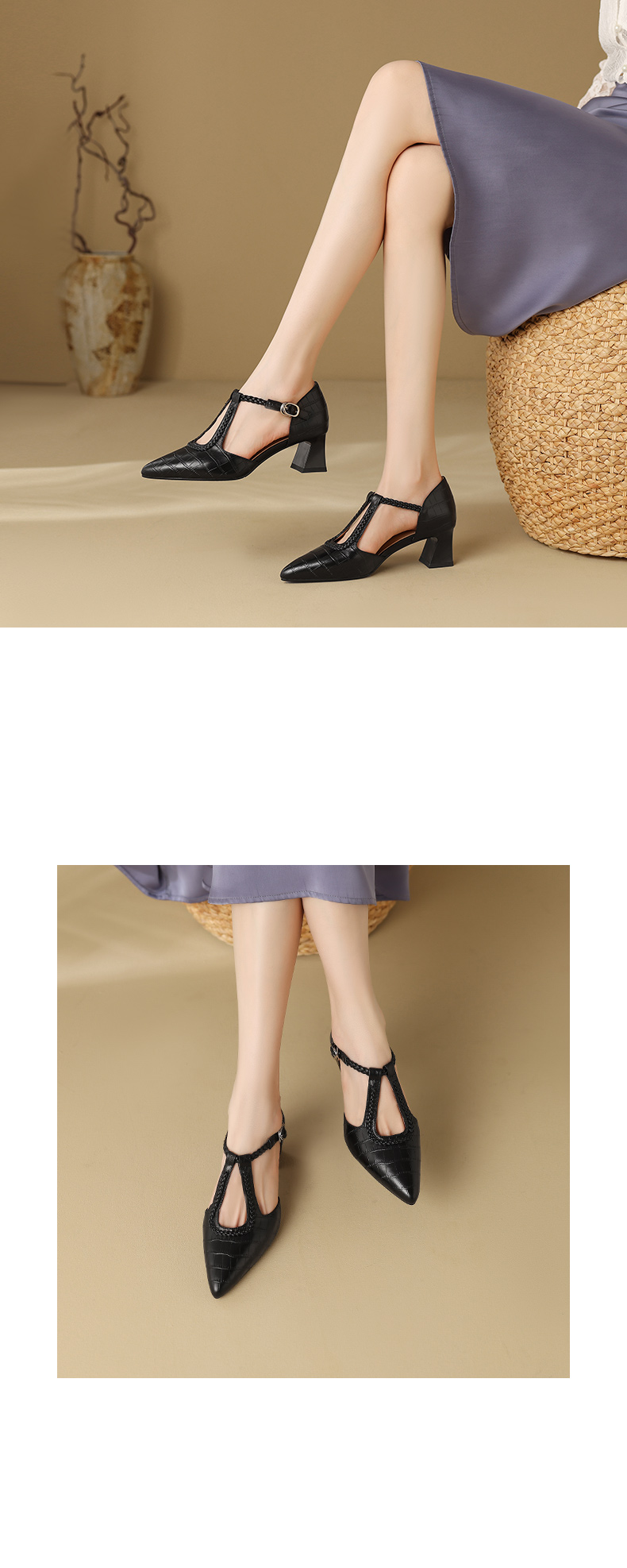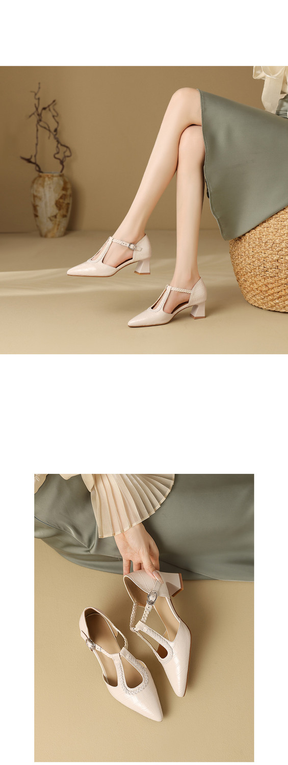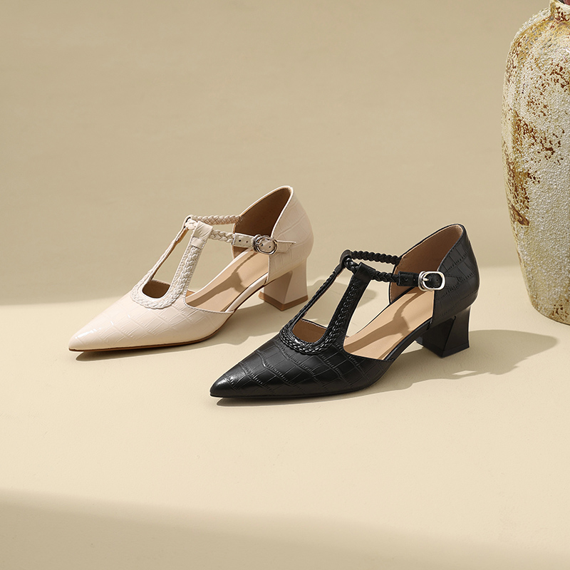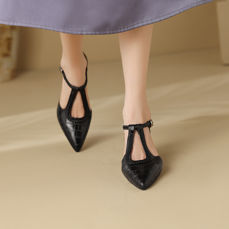 【预售5天】春夏季新款女鞋时尚尖头一字扣包脚中空高雅妈妈镂空单凉鞋PLGZ&D176-1