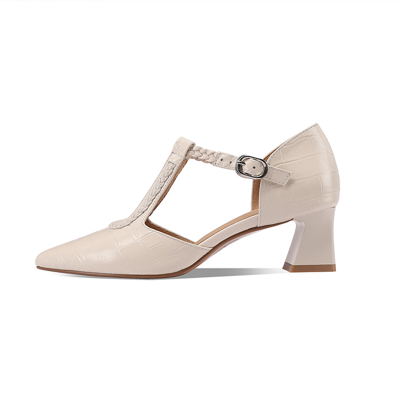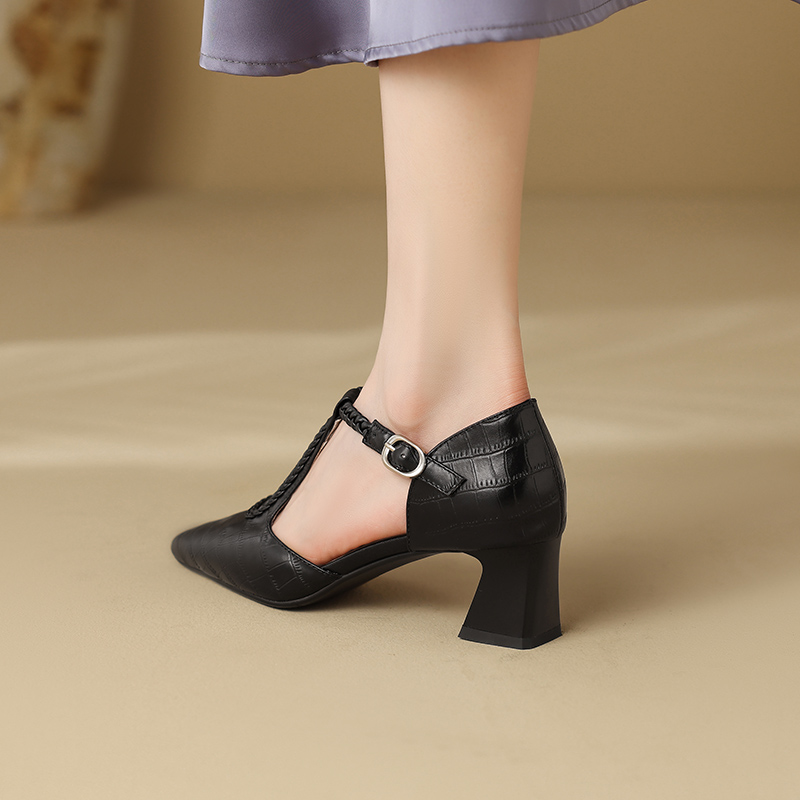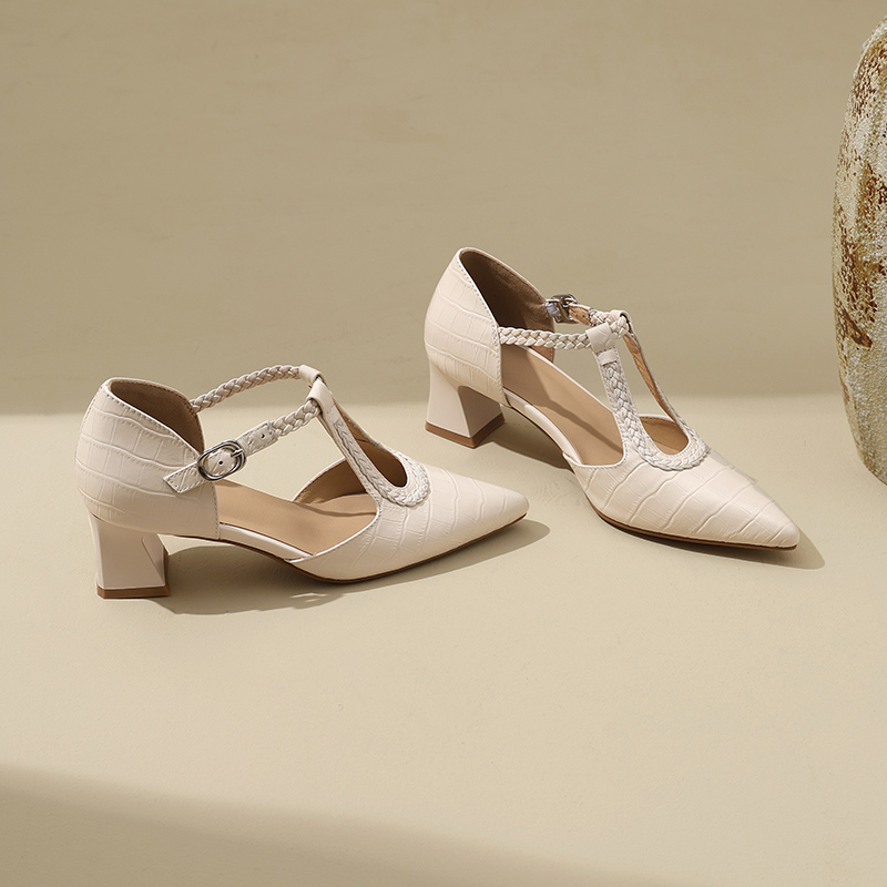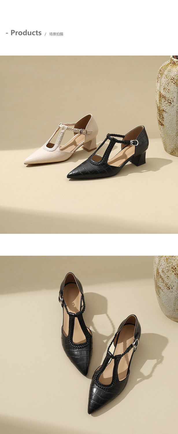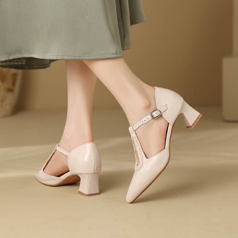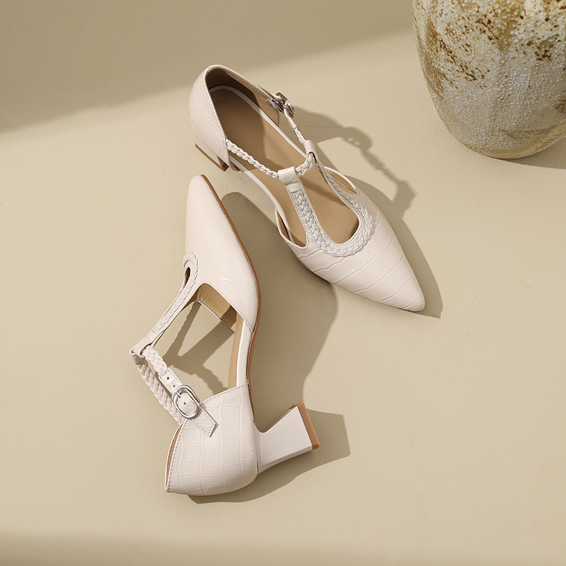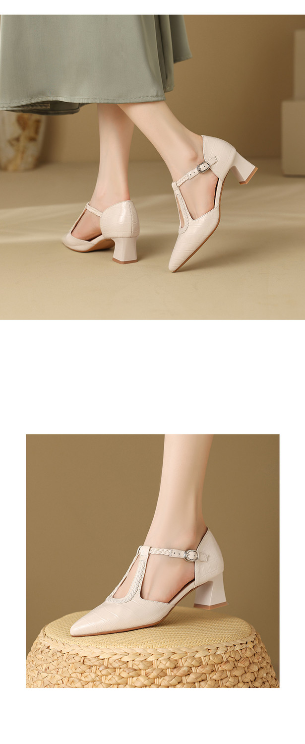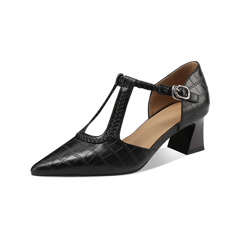 【预售5天】春夏季新款女鞋时尚尖头一字扣包脚中空高雅妈妈镂空单凉鞋PLGZ&D176-1