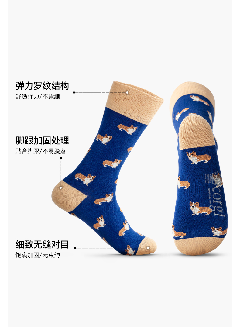 CORGI 英国进口 男款柯基狗狗印花中筒袜