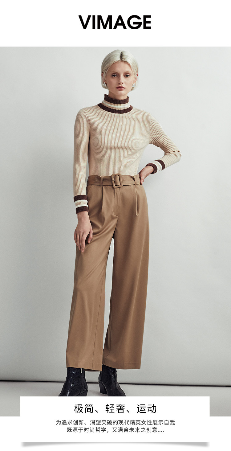 VIMAGE纬漫纪简约时尚通勤干练显瘦直筒阔腿裤女长裤V1405008D