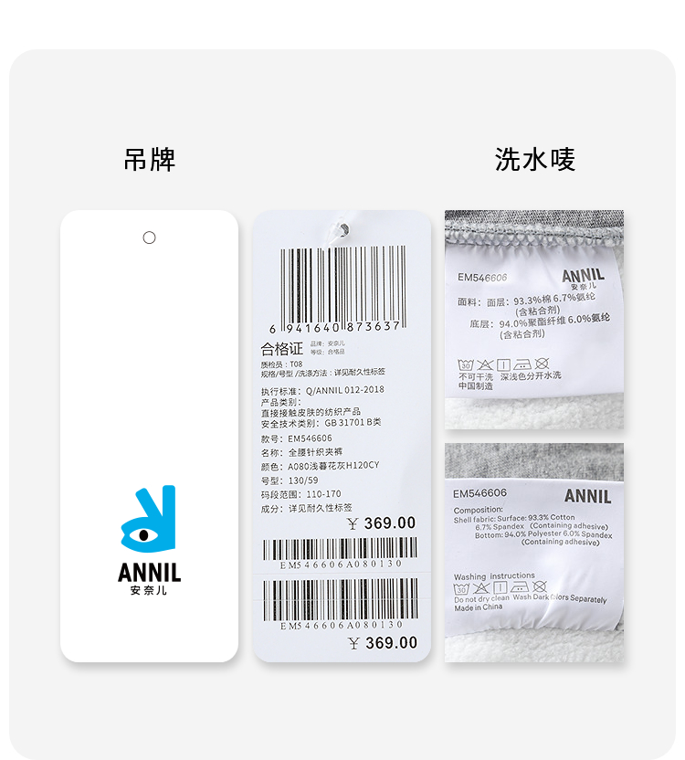 男女童全腰针织夹裤冬季新款安奈儿童装EM546606