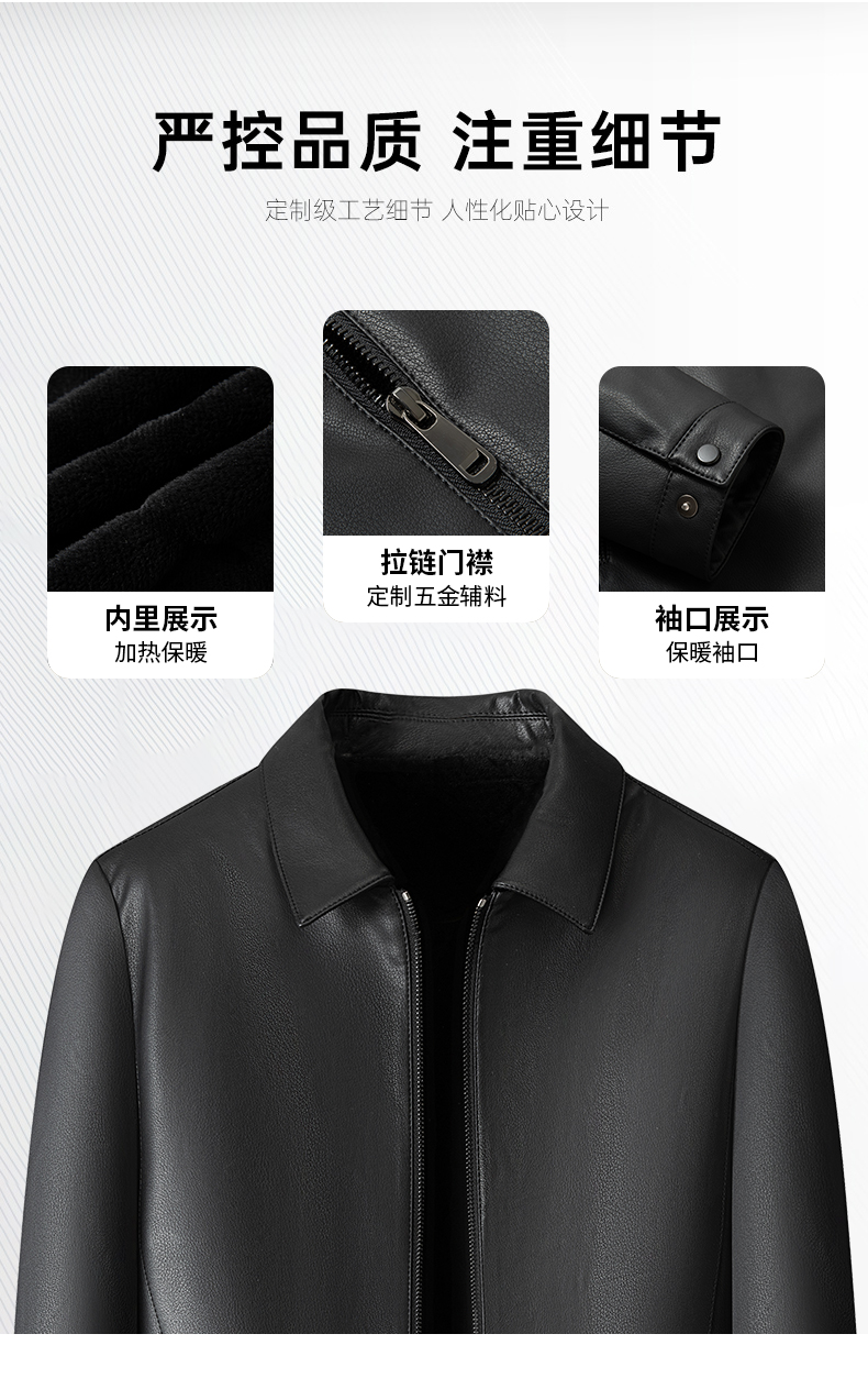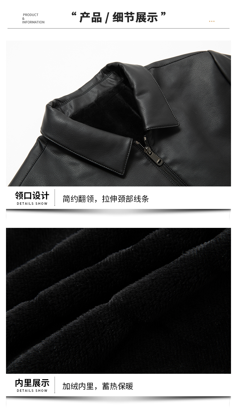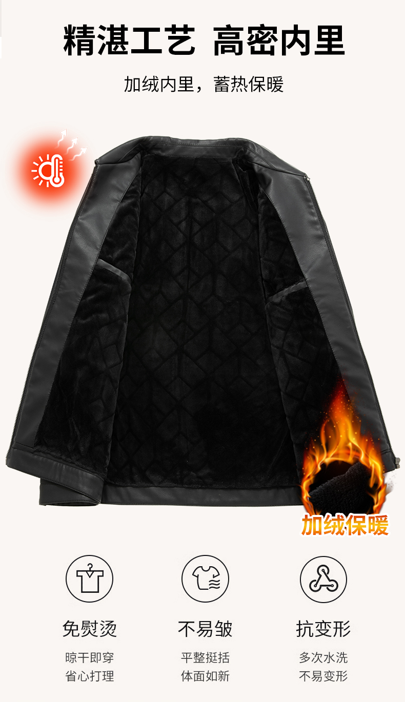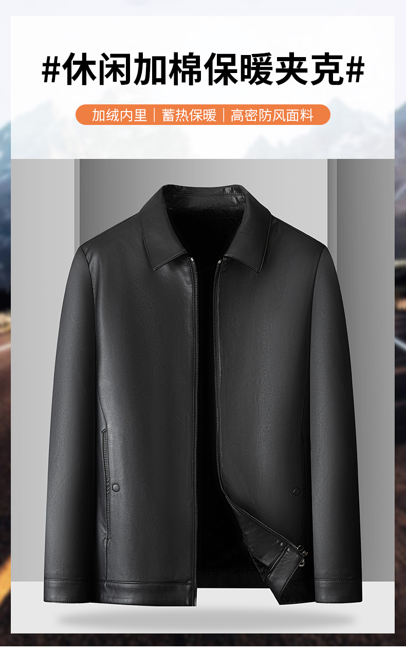 【加绒】【新款DKP】大依优型大码皮衣加绒夹克翻领棉衣胖子大码男休闲商务宽松加肥加大上衣冬季外套