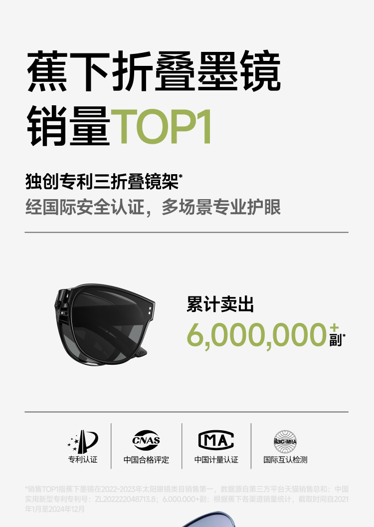 【蕉下精选】蕉下大方圆框折叠近视墨镜FD00826