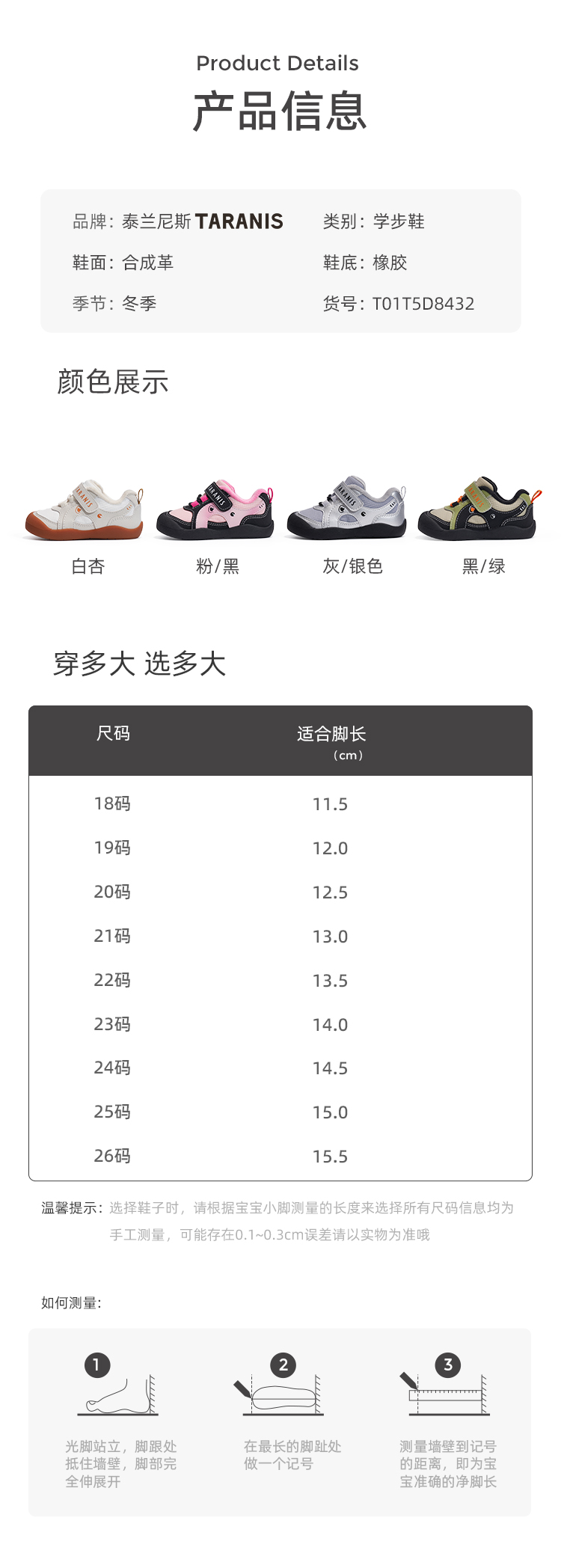 【泰兰尼斯】【新品】婴童段冬款加绒保暖包头防踢学步鞋T01T5D8432