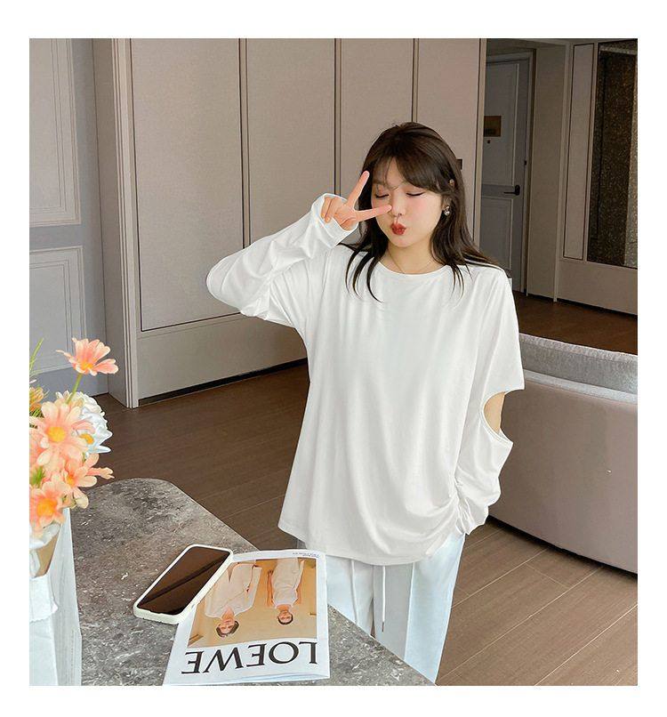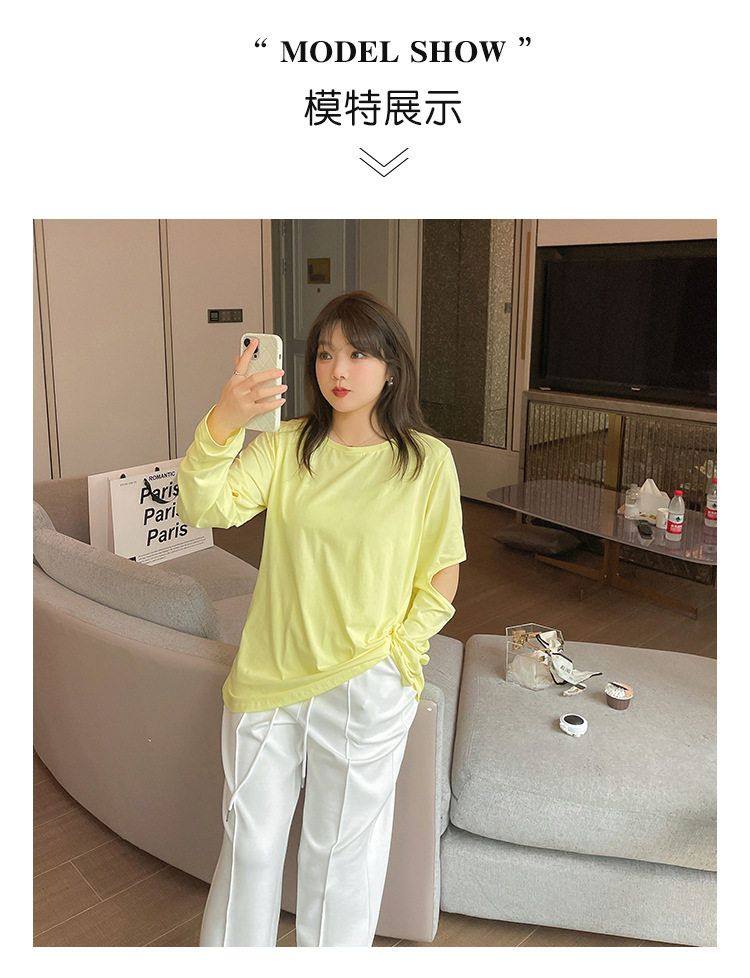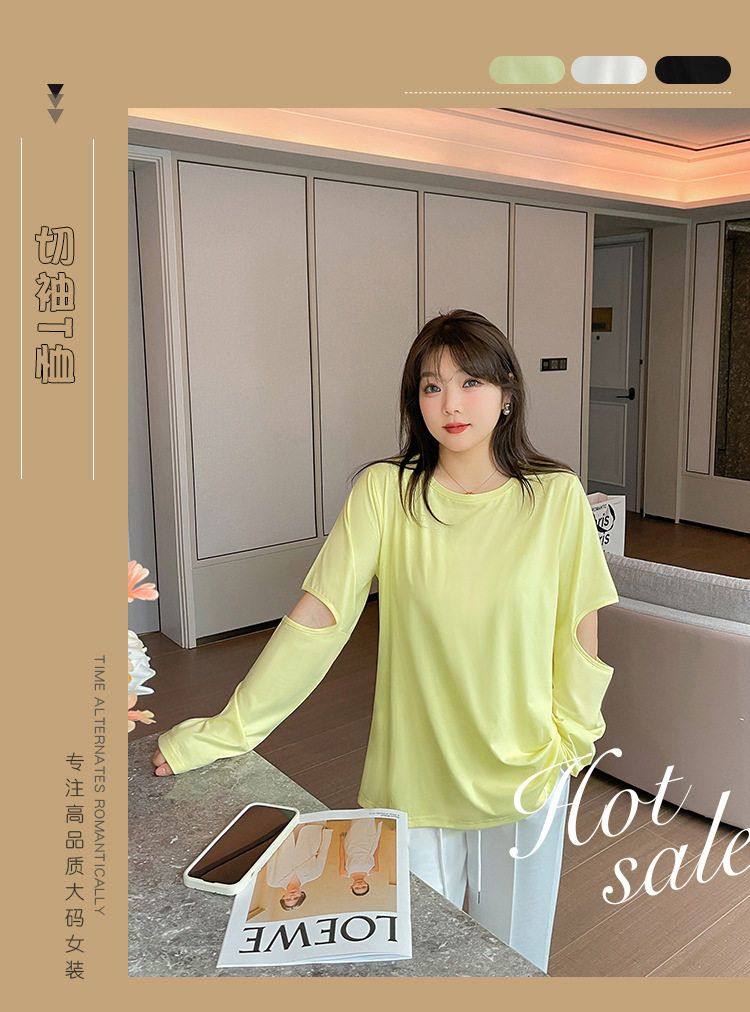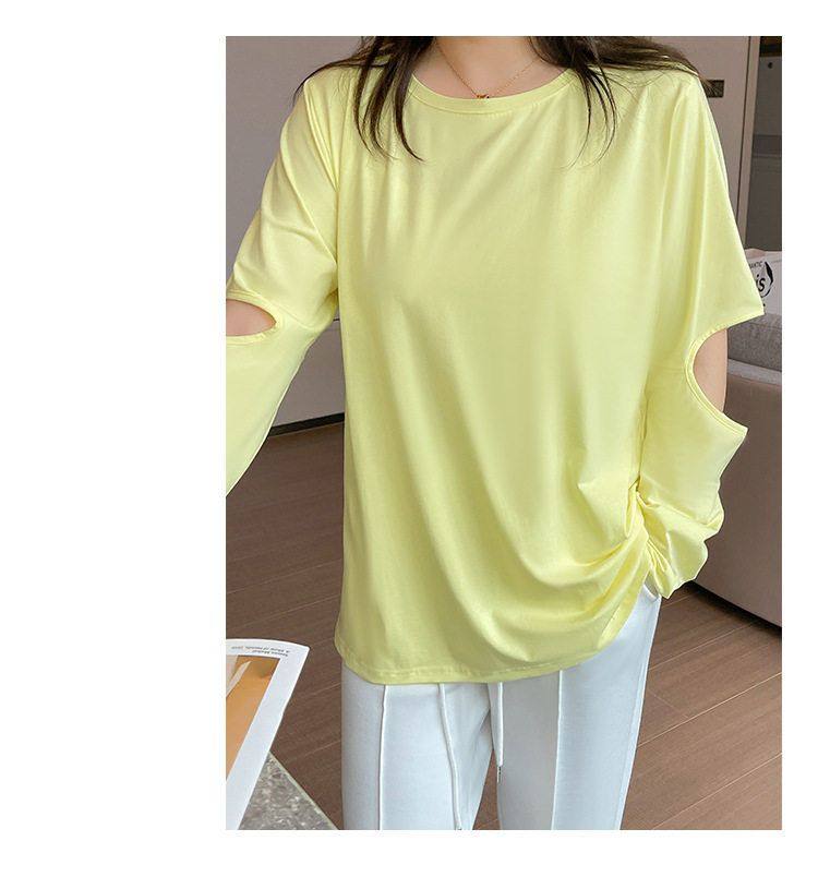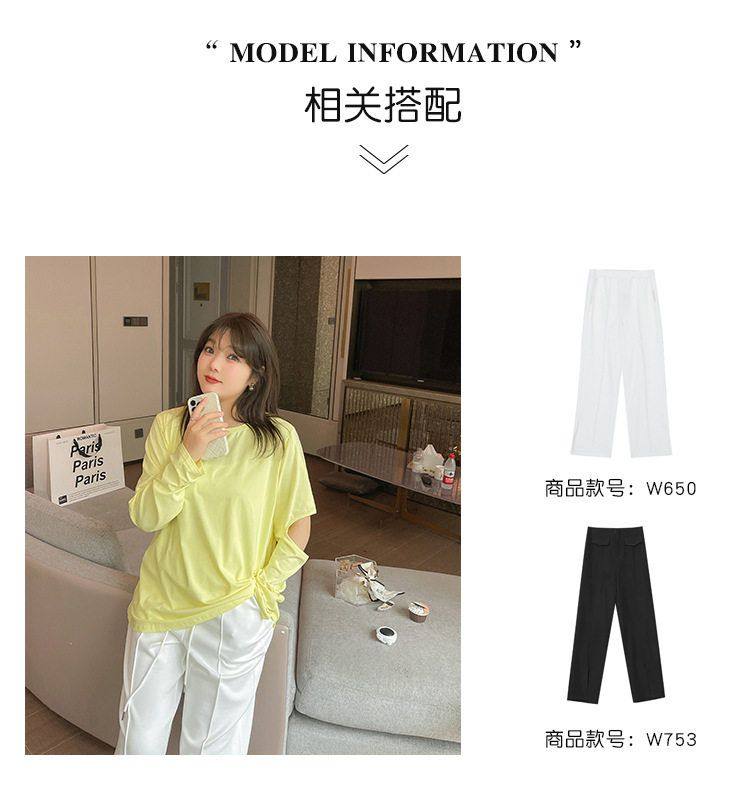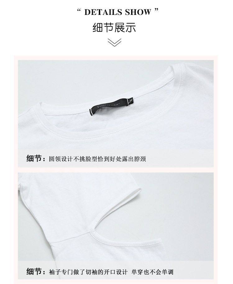 【诗铭洛可】W674切袖T恤100%棉上衣B21-2